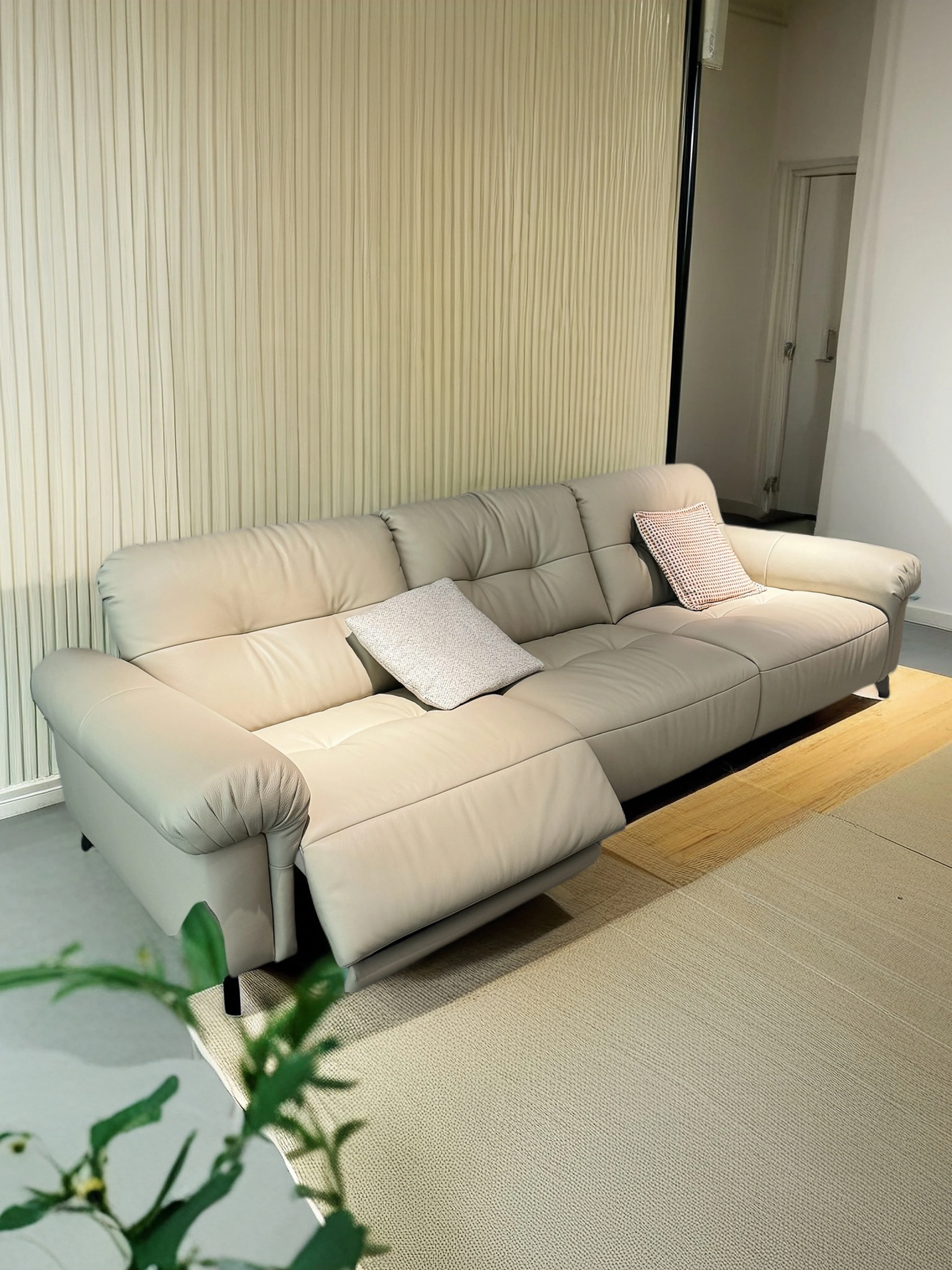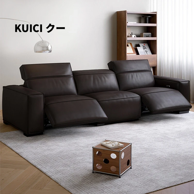 モダンラグジュアリー豆腐ブロック電動ソファ - 高級本革牛皮使用、調整可能な背もたれ、壁にぴったり寄せられるデザインで、どんなお部屋にもフィット!快適さとスタイルを兼ね備えた理想のソファです。