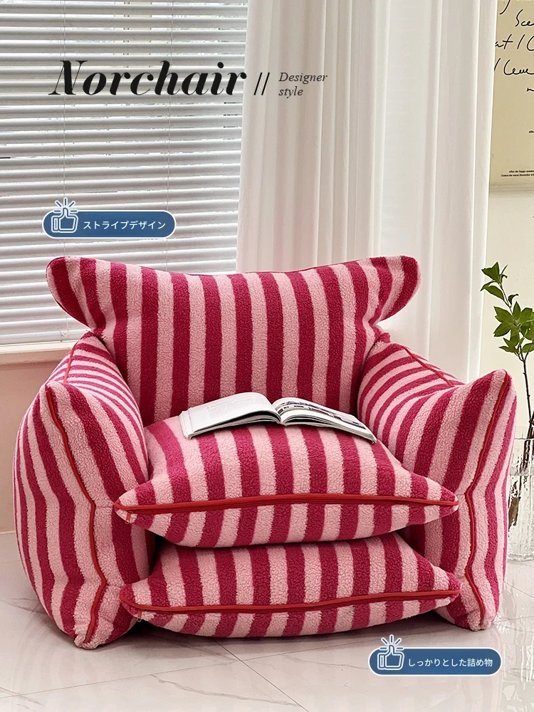 NORCHAIR人気のクリエイティブなリラックスソファ!家庭用リビングにぴったりなストライプデザインの布製サンデッキチェア。狭いスペースにも最適な小型タタミにも対応!快適なひとときをお楽しみください。