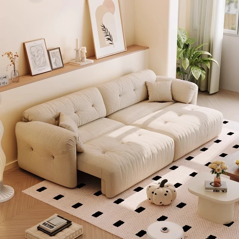 高品質クラウド電動ファブリックソファ!リビングにぴったりな調節可能なスライド機能搭載、クリーミーな風合いのソファベッド。2025年新登場、快適な時間をお届けします!