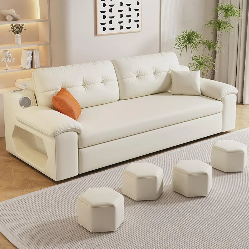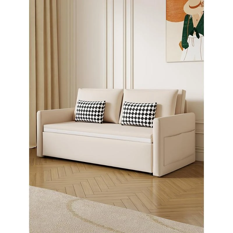 【香港送料無料】クリーミーな風合いの折りたたみ伸縮ソファベッド - 小型住宅やバルコニーにぴったりな多機能デザイン!快適なリラックスタイムを実現!