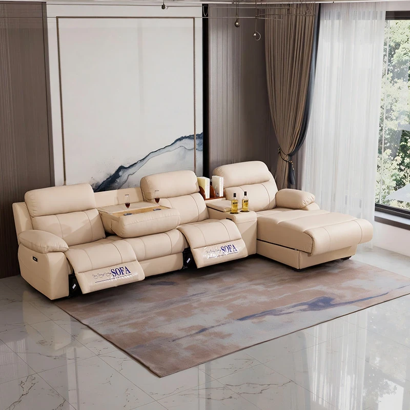 ルイ・ダニエル イタリアンミニマリズム 本革電動機能ソファ - 高級牛革使用、家庭シアターや別荘に最適なスタイリッシュなデザイン!快適さとエレガンスを兼ね備えた贅沢な座り心地をお楽しみください。