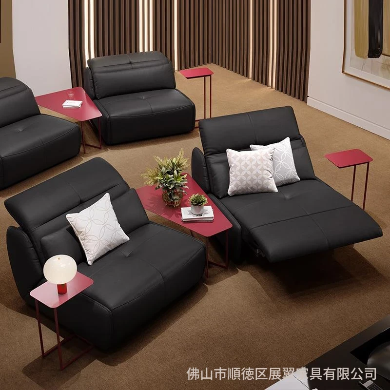イタリアンミニマル電動ソファ|リビング用ファーストクラス調整可能なブラックレザー|上質な本革使用のモダンシンプルデザイン!快適な座り心地を実現し、あなたの空間をスタイリッシュに演出します。