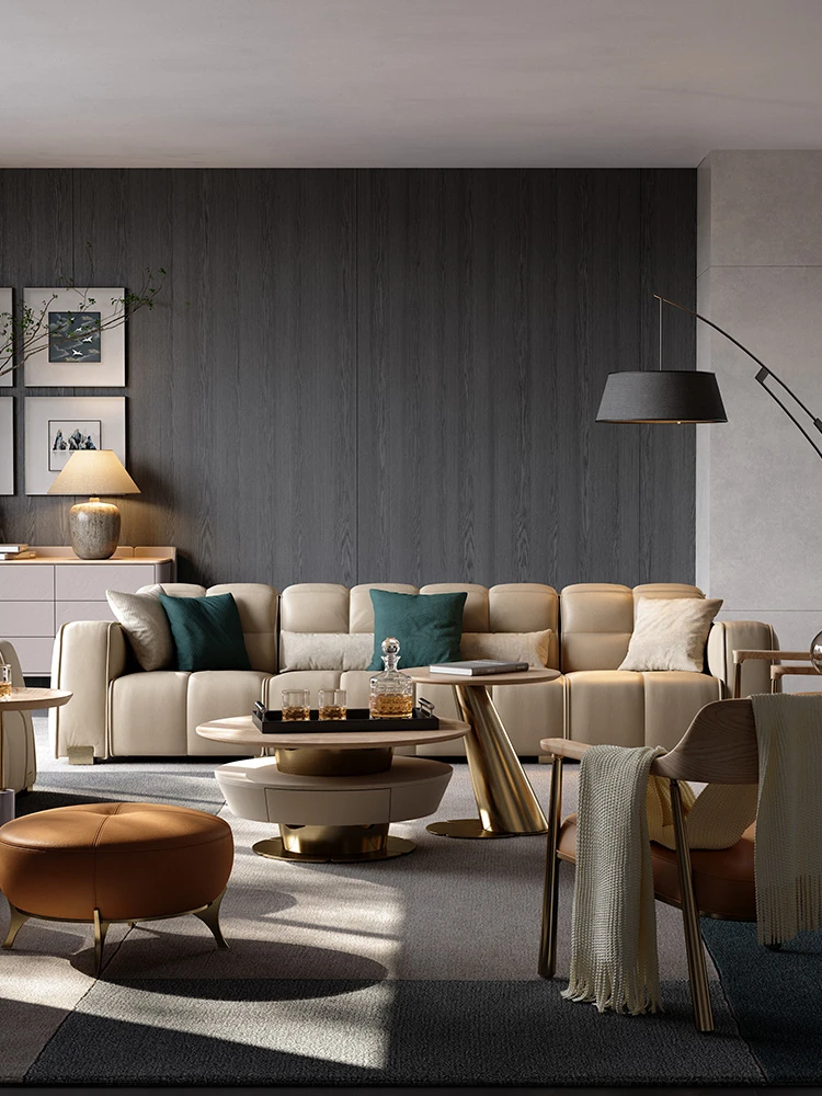 Luxury Minimalist Italian Leather Sofa - Multi-functional Straight Sofa for High-End Open-Concept Villas and Apartments