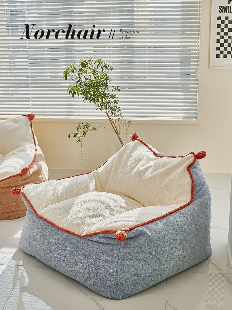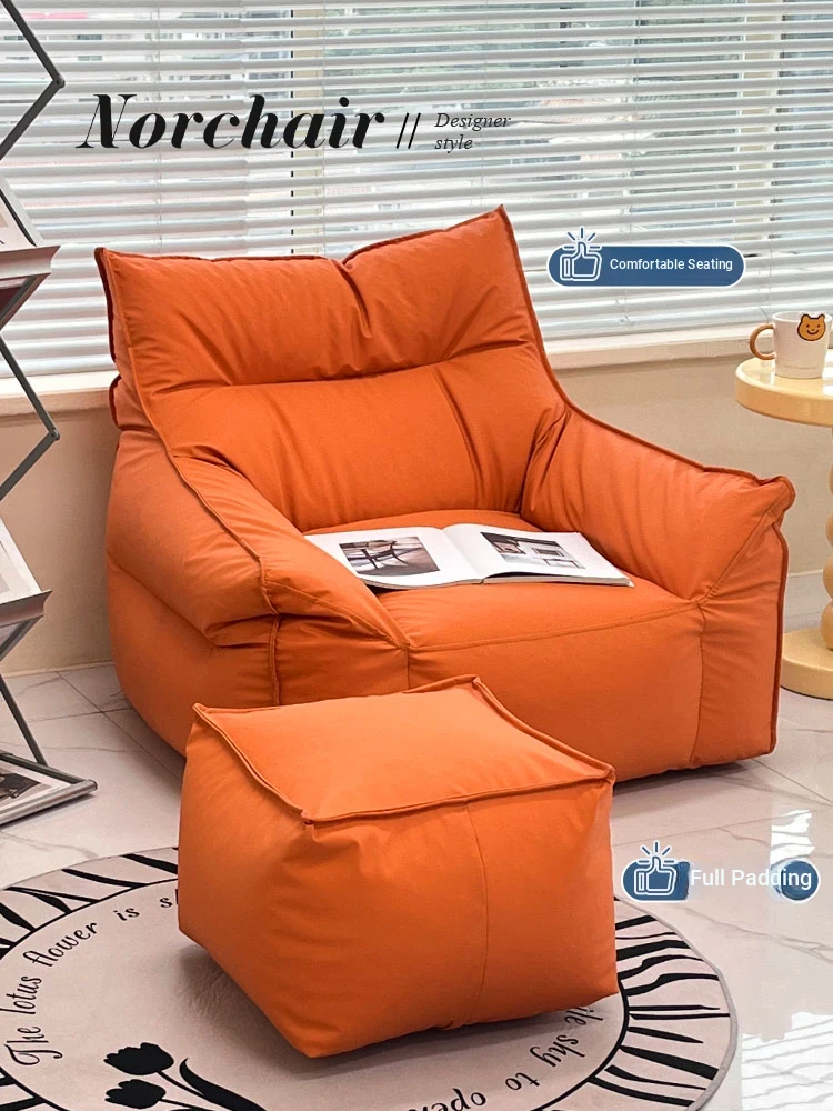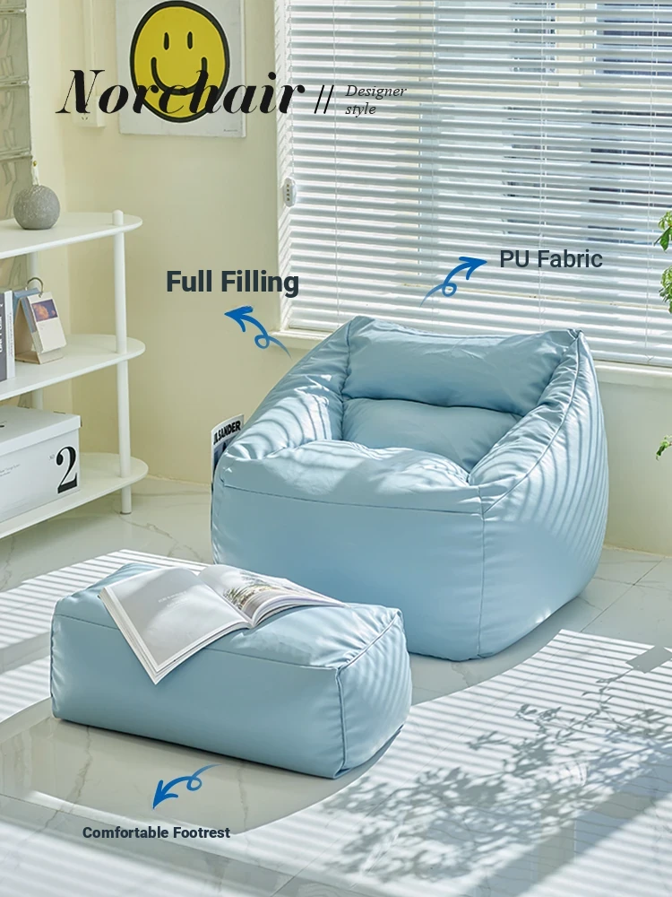 NORCHAIR Nordic Leather Lazy Sofa - Creative Home Tatami Bean Bag Chair, Trendy INS Style Lounge Chair for Living Room Relaxation