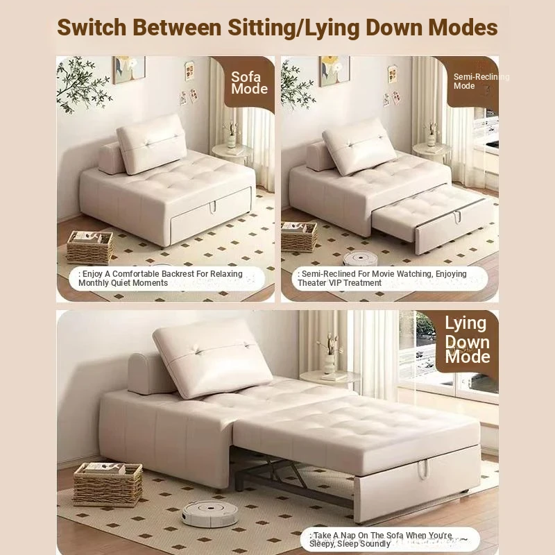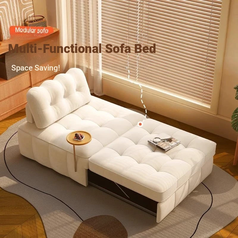 【Free Shipping to Hong Kong】Cream Puff Sofa Bed - Versatile Single Pull-Out Design for 2024 Living Room, Perfect for Cozy Spaces and Relaxation!