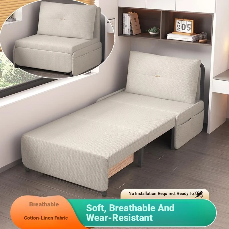 Hong Kong Free Shipping: Versatile Tech Fabric Sofa Bed – Foldable, Ideal for Small Apartments, Perfect for Living Rooms and Study Rooms, Accommodates Both Couples and Singles!