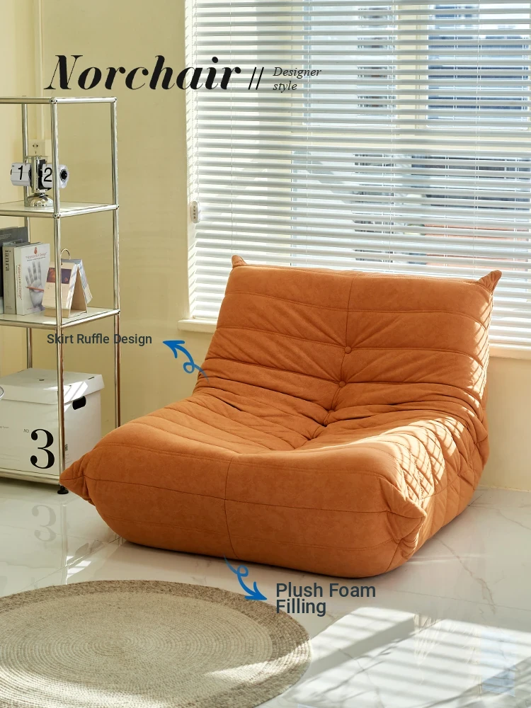 NORCHAIR Scandinavian Luxury Lazy Sofa - Stylish Single Recliner for Home, Balcony, and Small Bedrooms - Perfect for Relaxation and Tatami Living Spaces