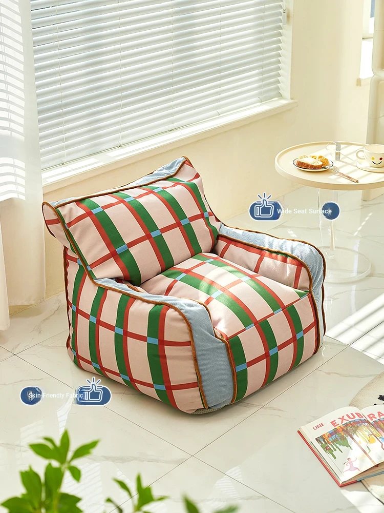 NORCHAIR Minimalist Retro Checkered Lazy Sofa - Trendy Single Bean Bag Chair with Backrest for Living Room Relaxation and Tatami Use