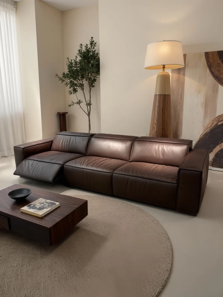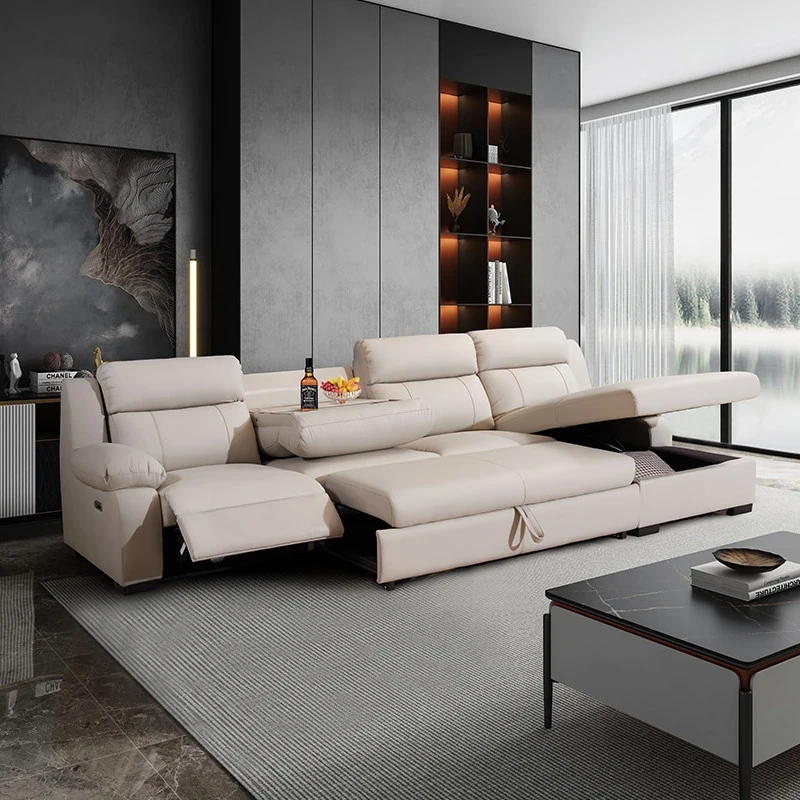 Italian Minimalist Electric Multi-Functional Genuine Leather Sofa - Top-Grain Cowhide, Retractable Design for Space-Saving, Perfect for Any Living Room, Wall-Free Arrangement