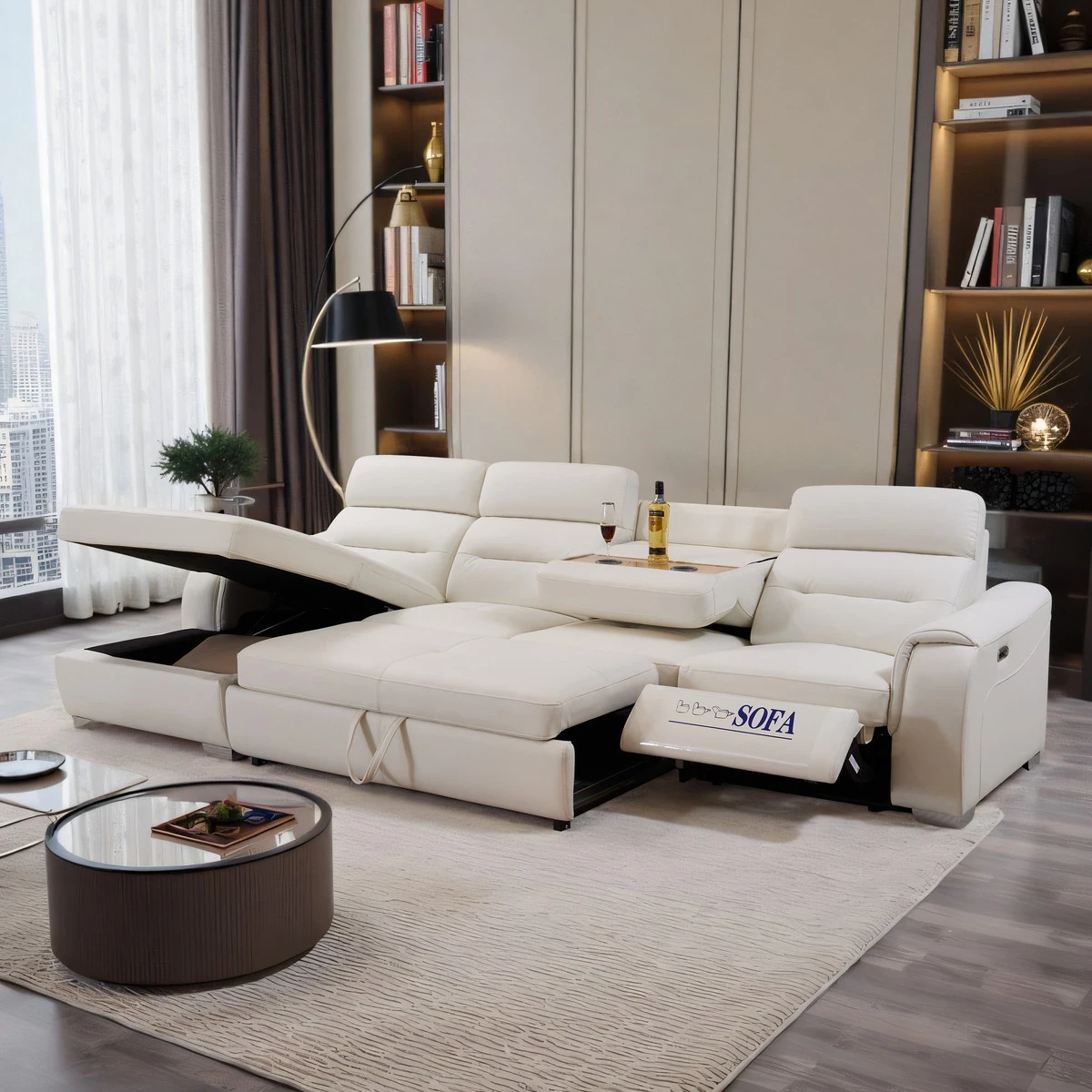 Luxury L-Shaped Electric Leather Sofa for Villa Home Theater - Italian U-Shaped Design Perfect for KTV and Corner Spaces, Ideal for Cozy Movie Nights and Entertaining!