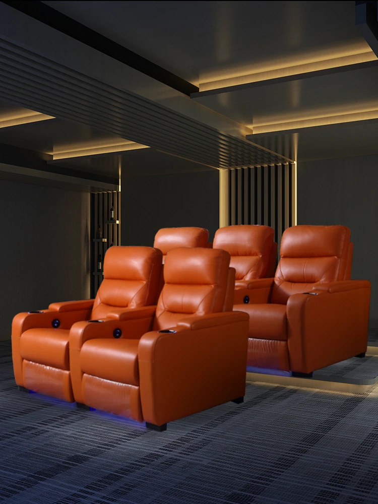 Luxury Home Theater Leather Sofa Set - New Multifunctional Private Villa Seating with Electric Recline for Family Movie Nights