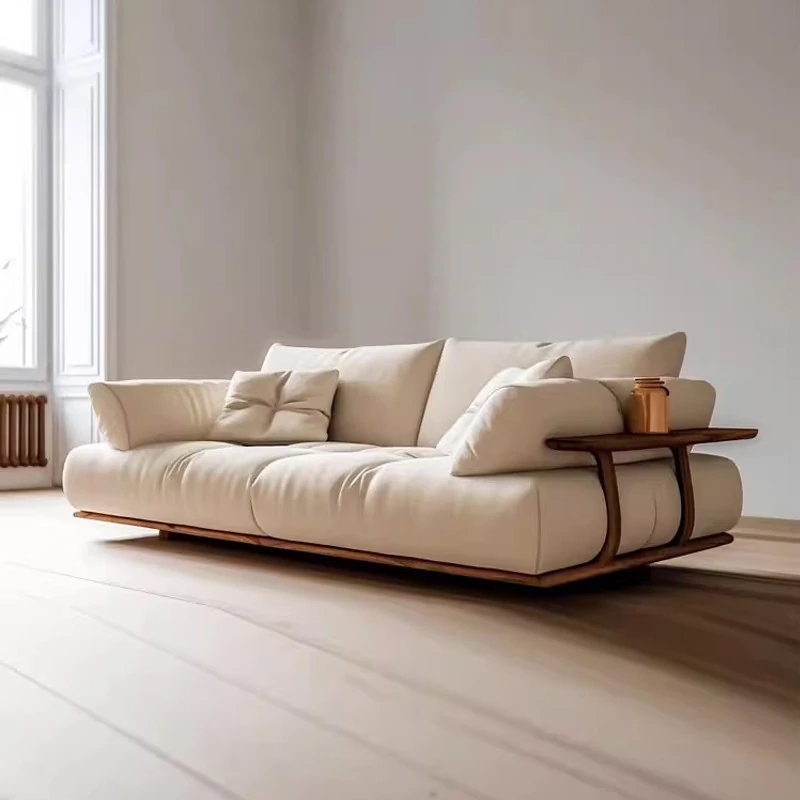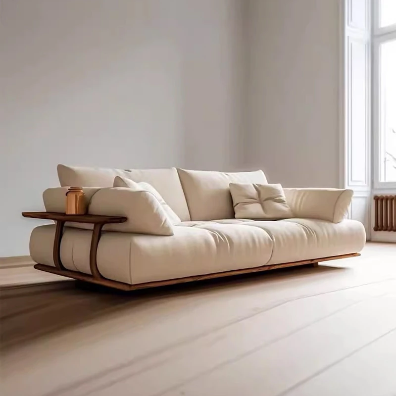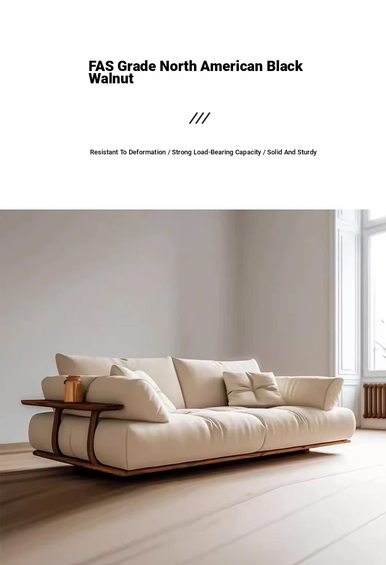 2025 New Chinese Style Walnut Wood Sofa for Living Room - Modern Minimalist Design for Small Spaces, Perfect for Couples or Office Use
