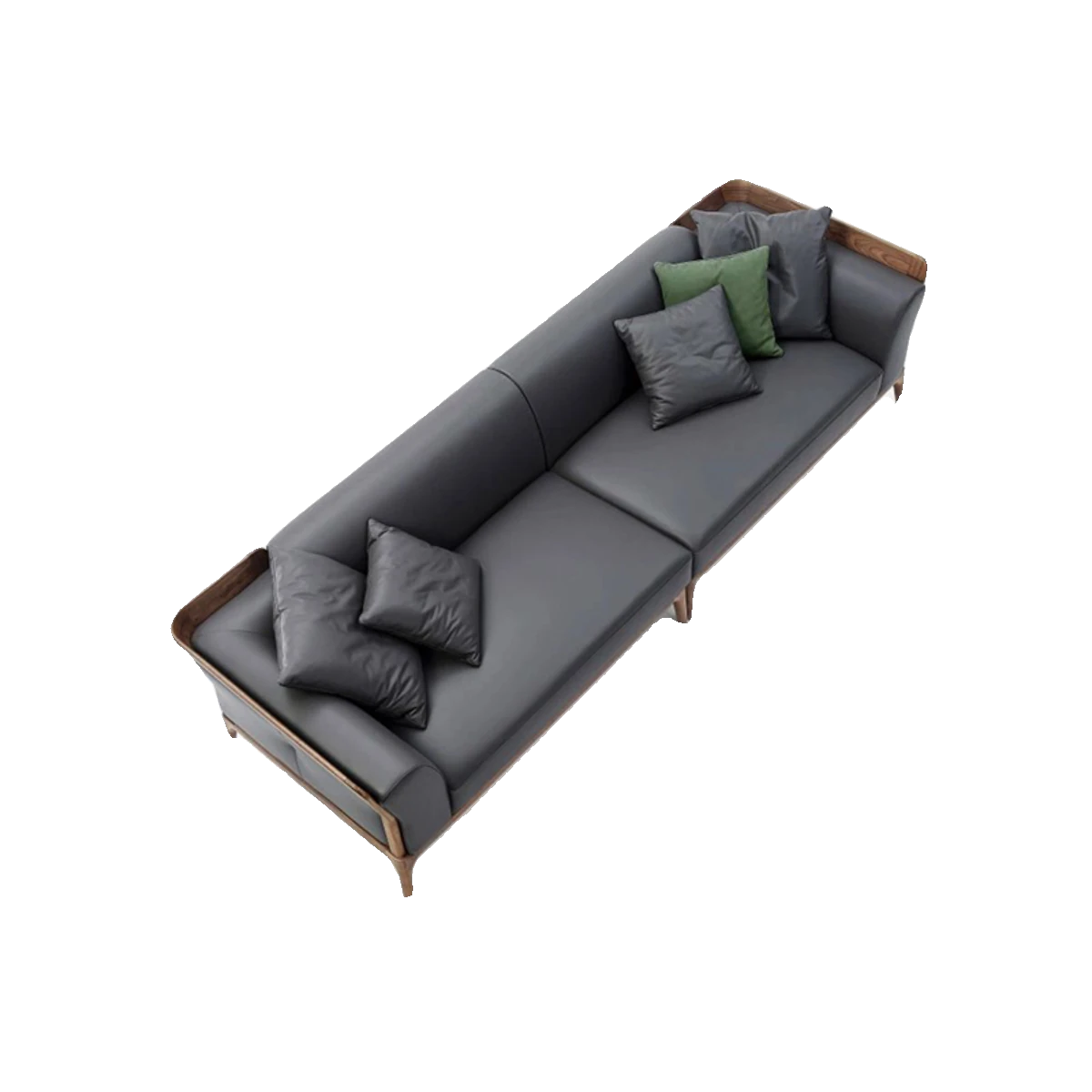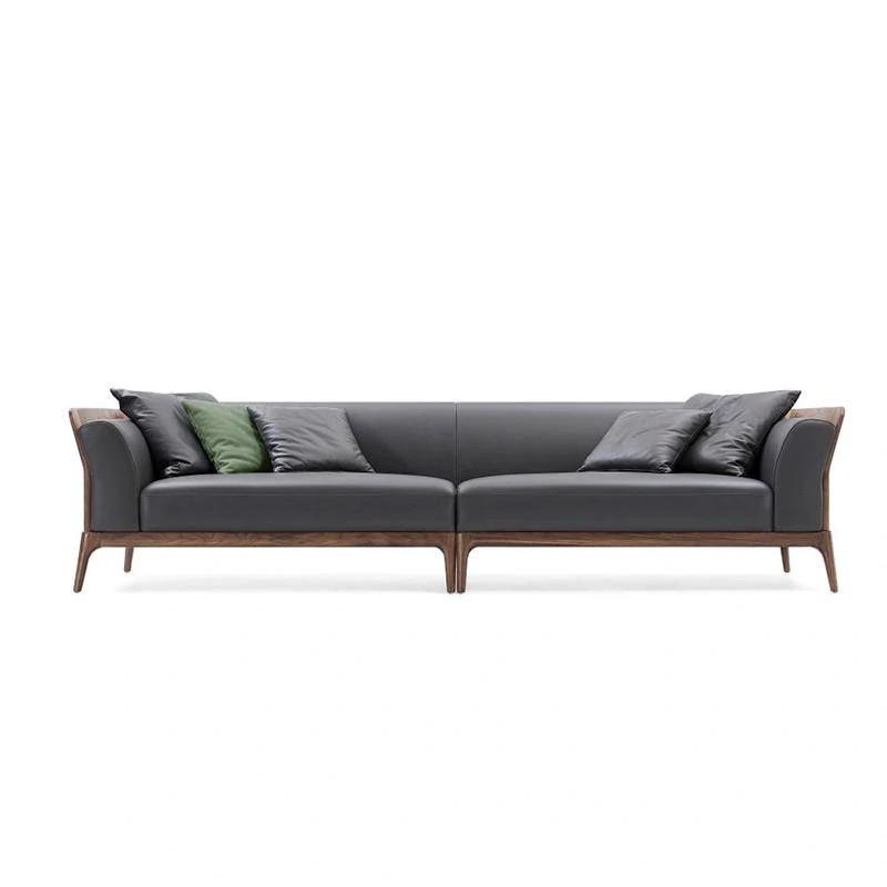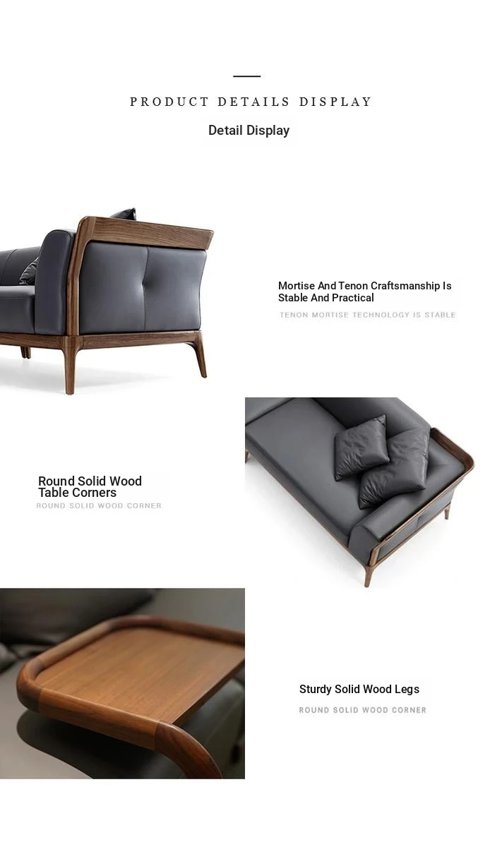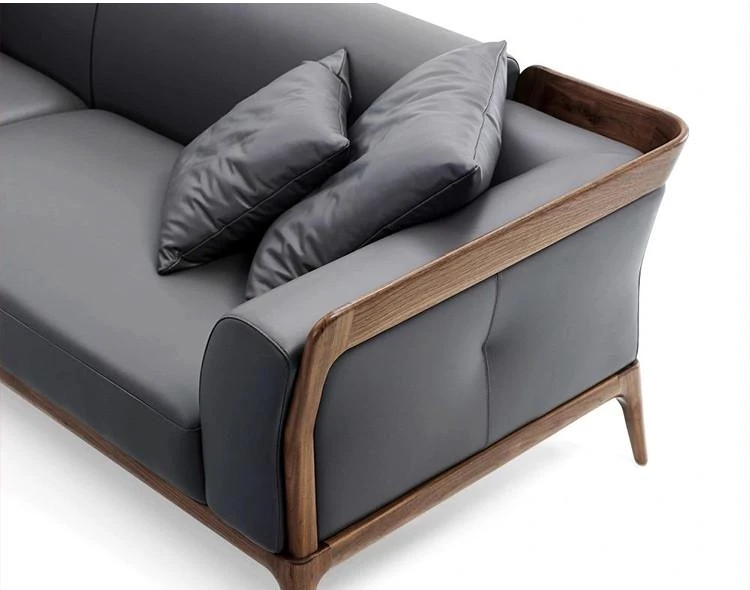 2025 New High-End Chinese Style Leather Sofa for Living Room - Walnut Wood and Faux Leather, Perfect for Small Spaces, Accommodates 3 to 4 People