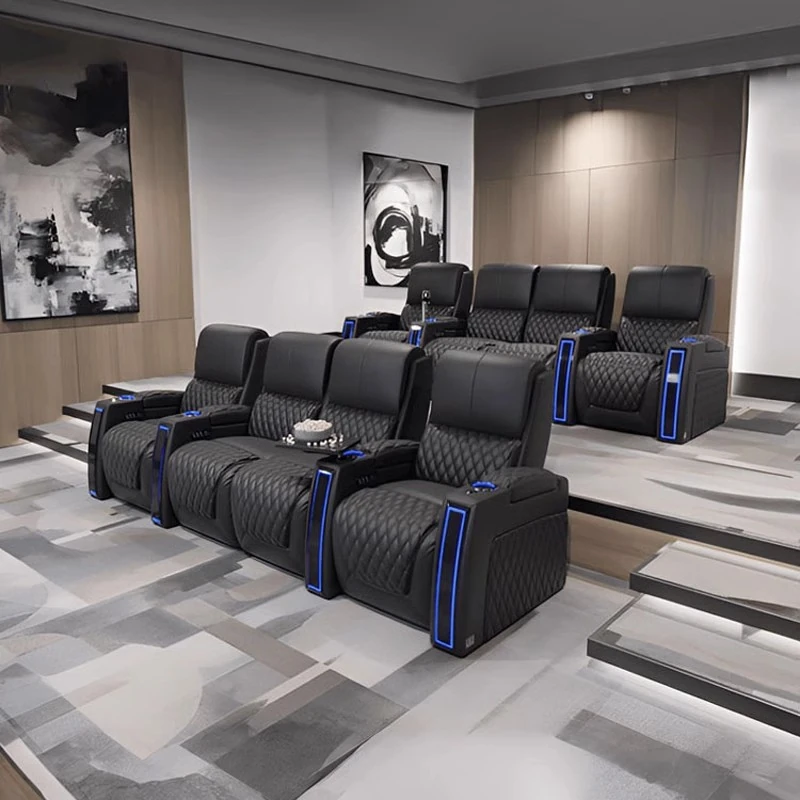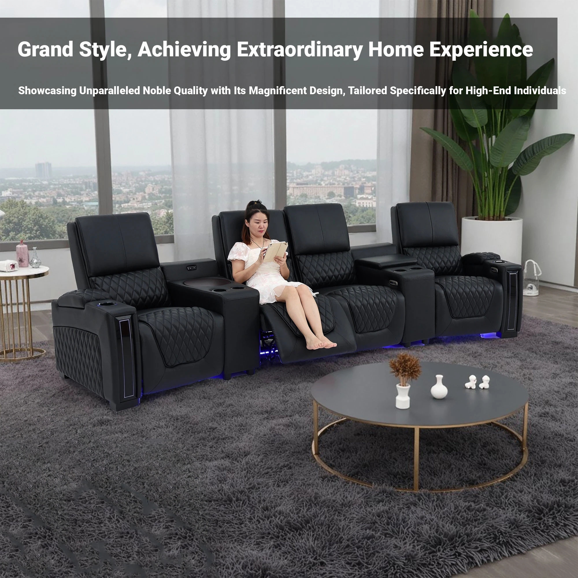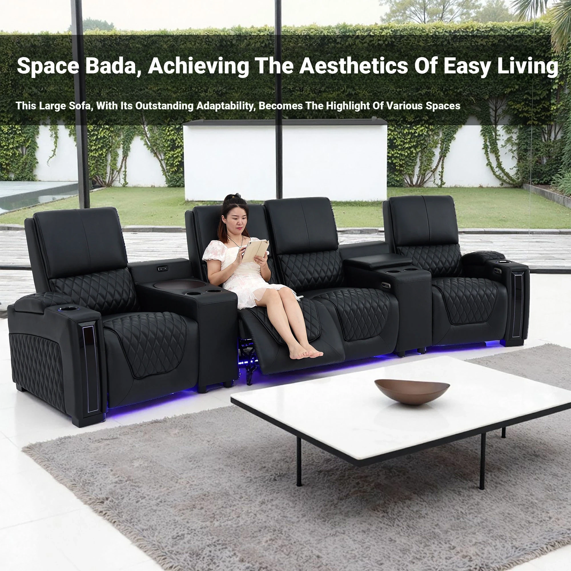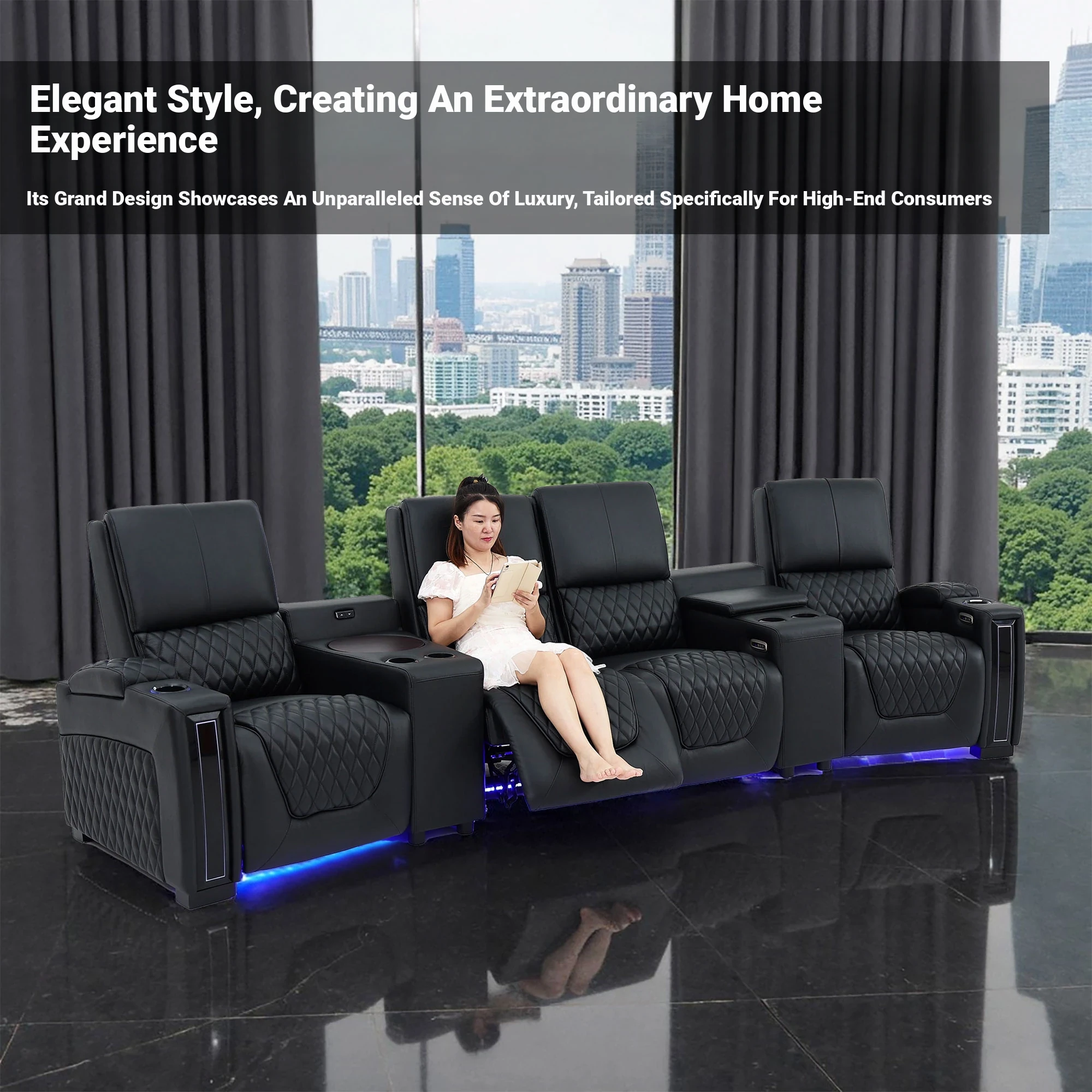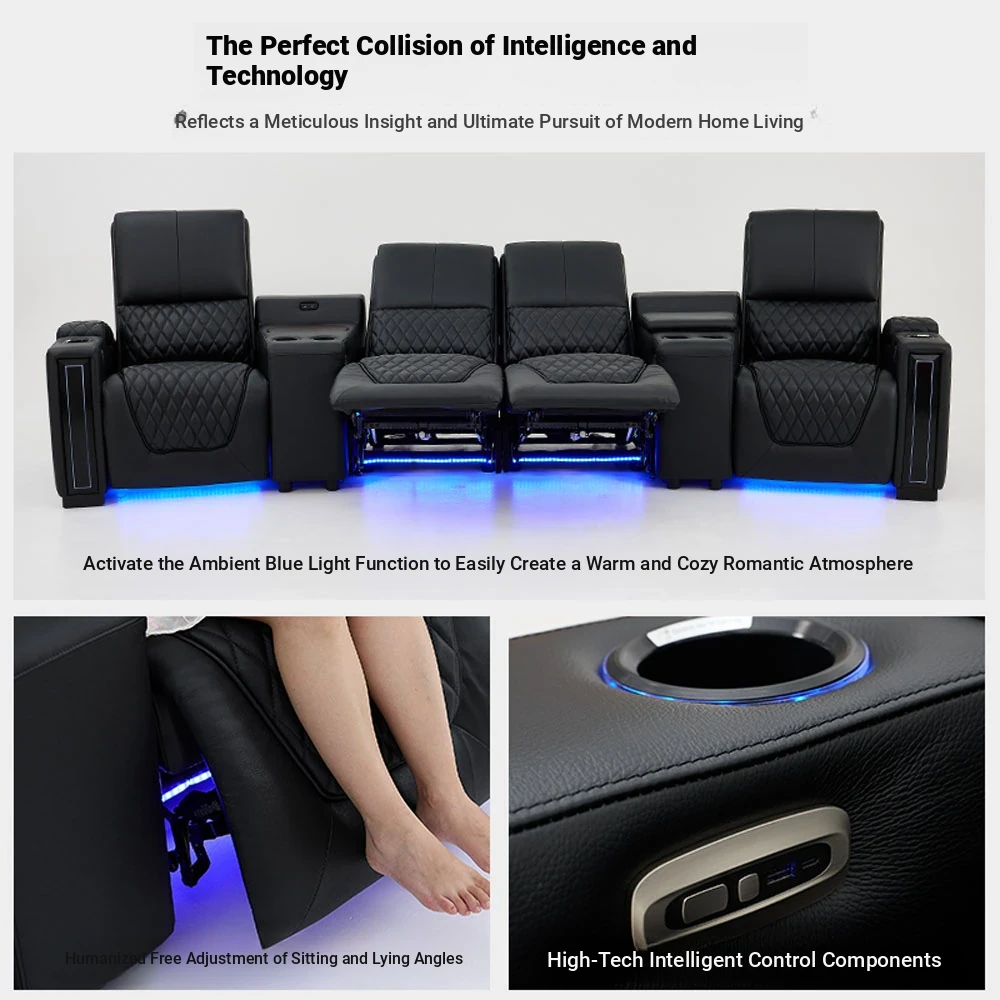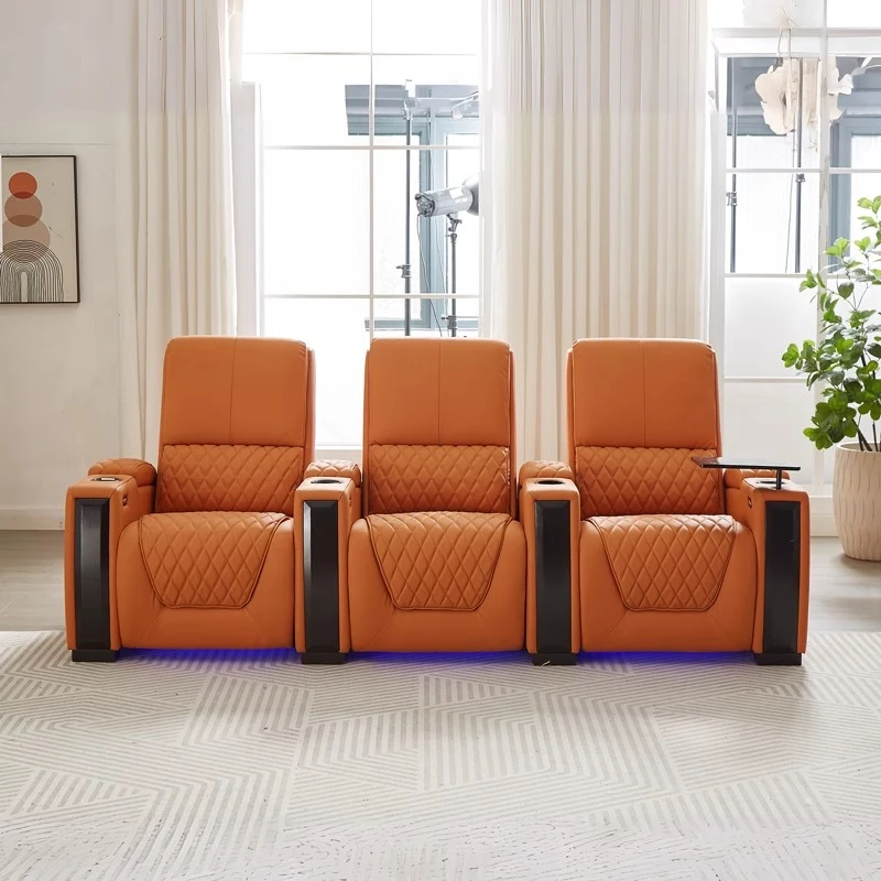 3-Seater Compact Electric Recliner Sofa for Home Theater - High Back Genuine Leather Living Room Seating for Ultimate Entertainment Experience