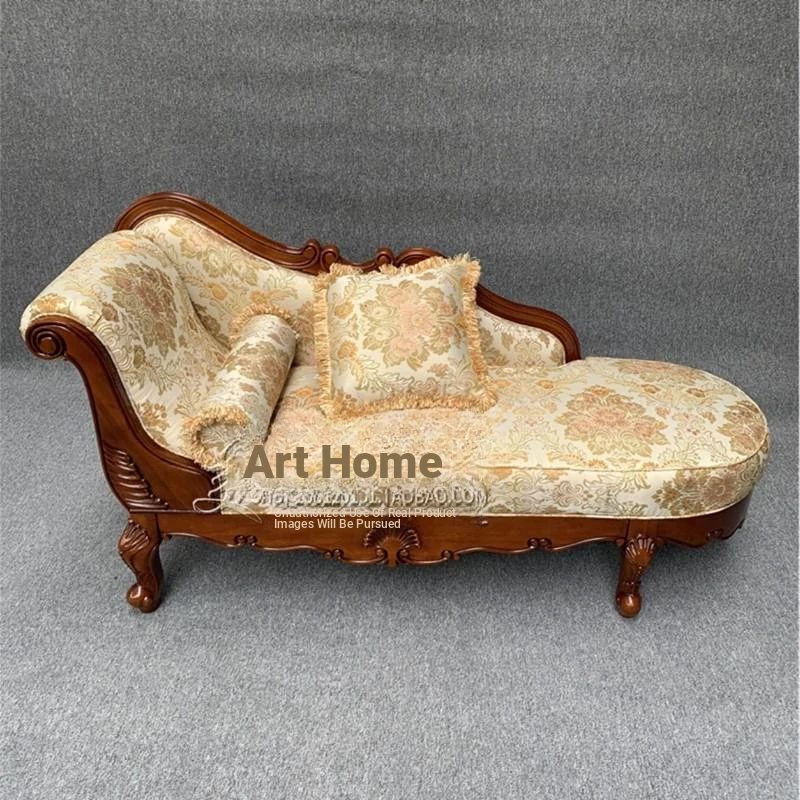 American Style Chaise Lounge - Elegant Fabric Sofa Bed for Bedroom and Living Room, Comfortable Lazy Chair with Solid Wood Frame, European Design Chaise for Ultimate Relaxation