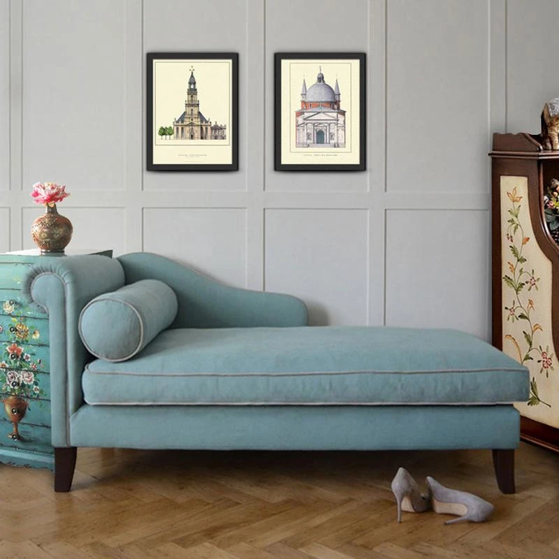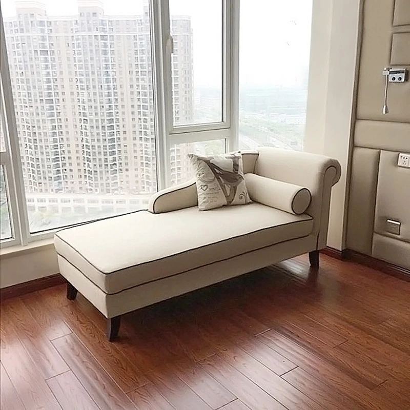American Style Fabric Chaise Lounge Chair - Elegant Single Sofa for Bedroom and Living Room, Solid Wood Construction, Perfect for Relaxation and Leisure Time