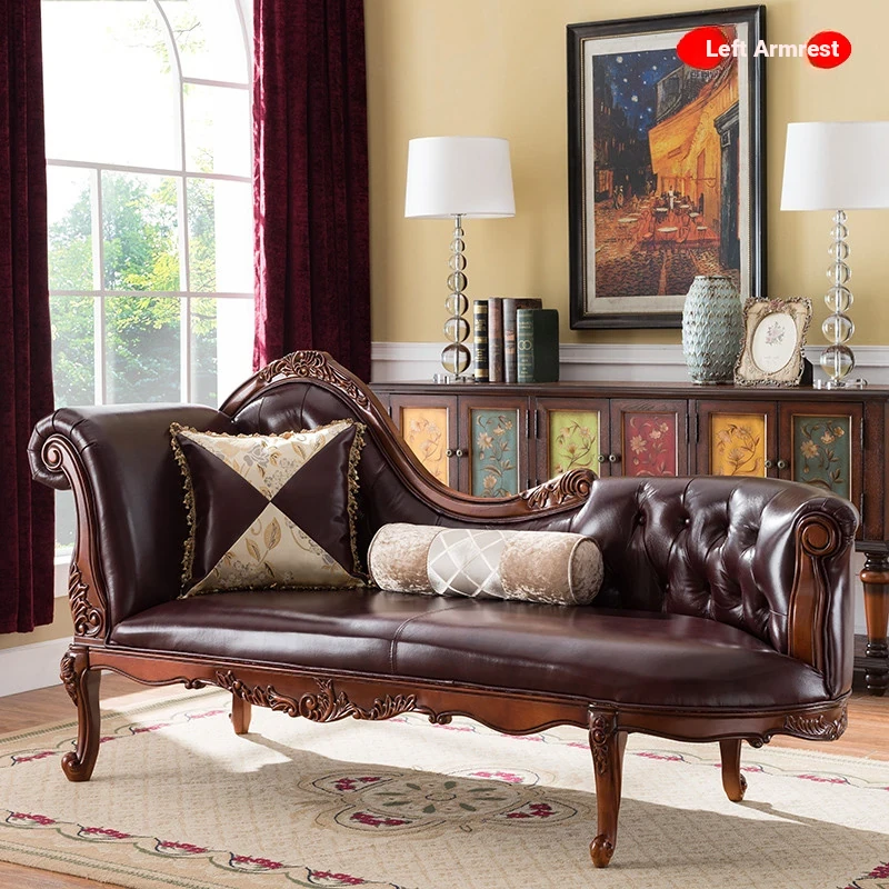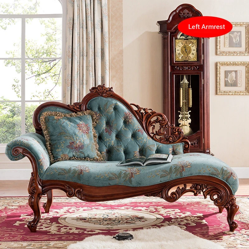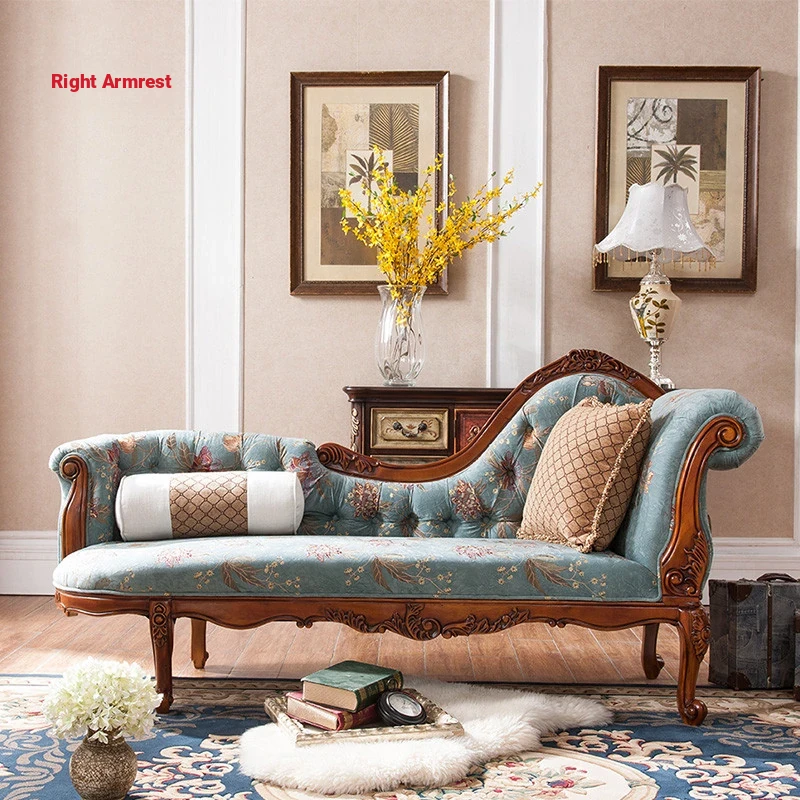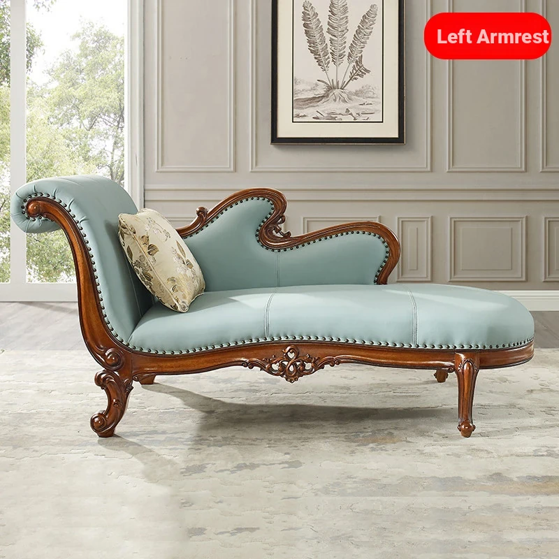 American-Style Solid Wood Chaise Lounge - Multifunctional Single Sofa Chair for Living Room, Bedroom, and Small Spaces - Elegant Recliner for Relaxation and Comfort
