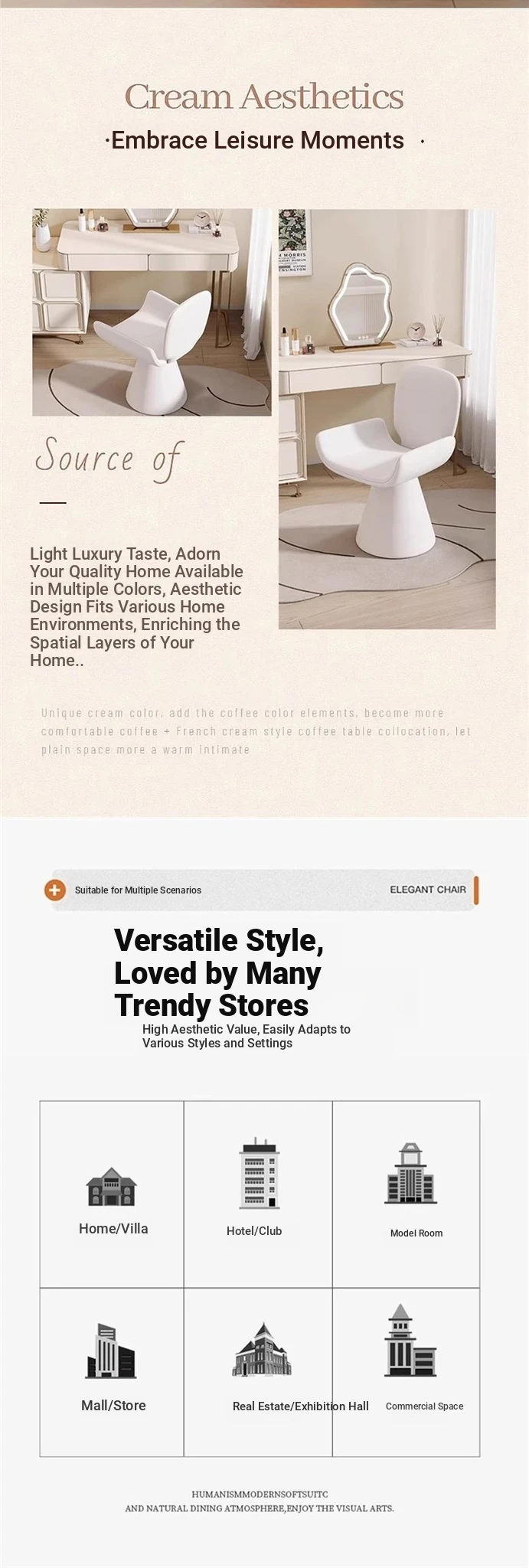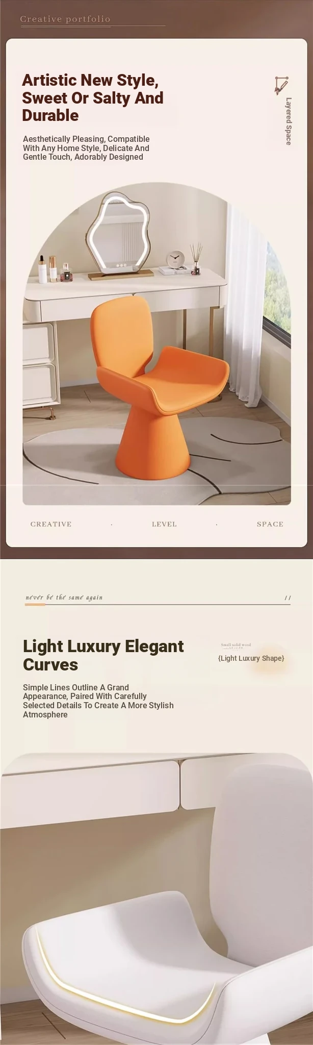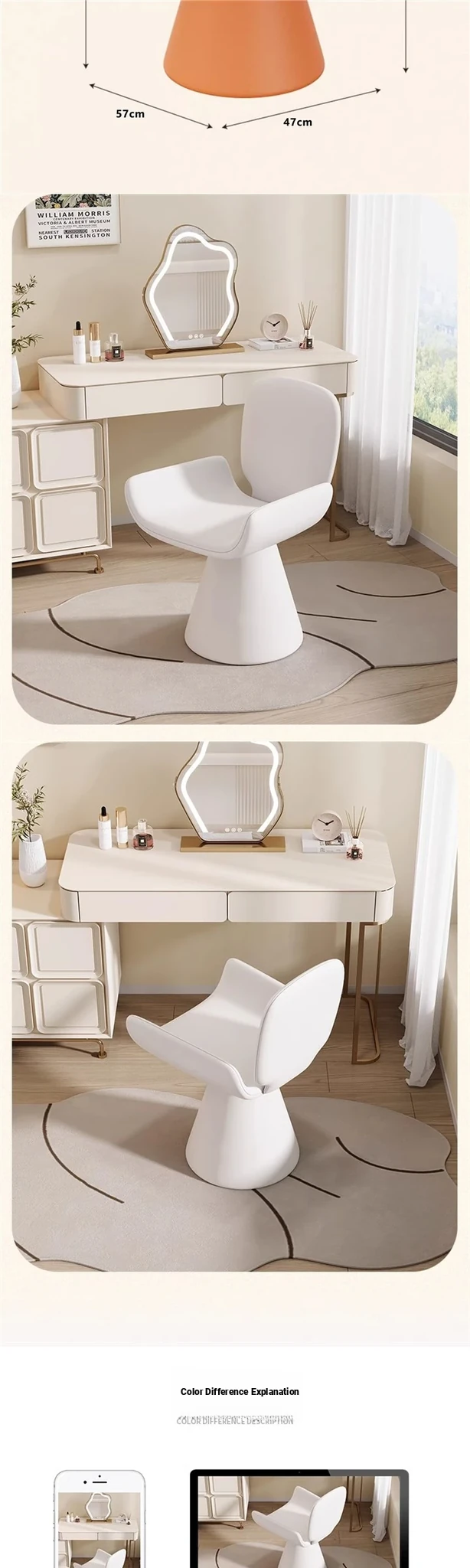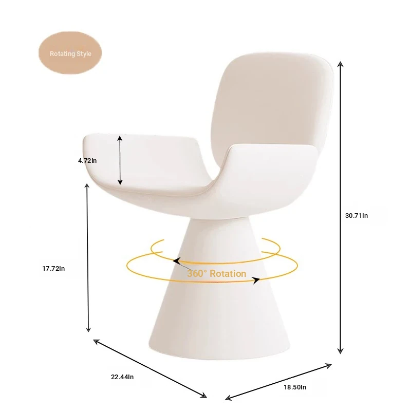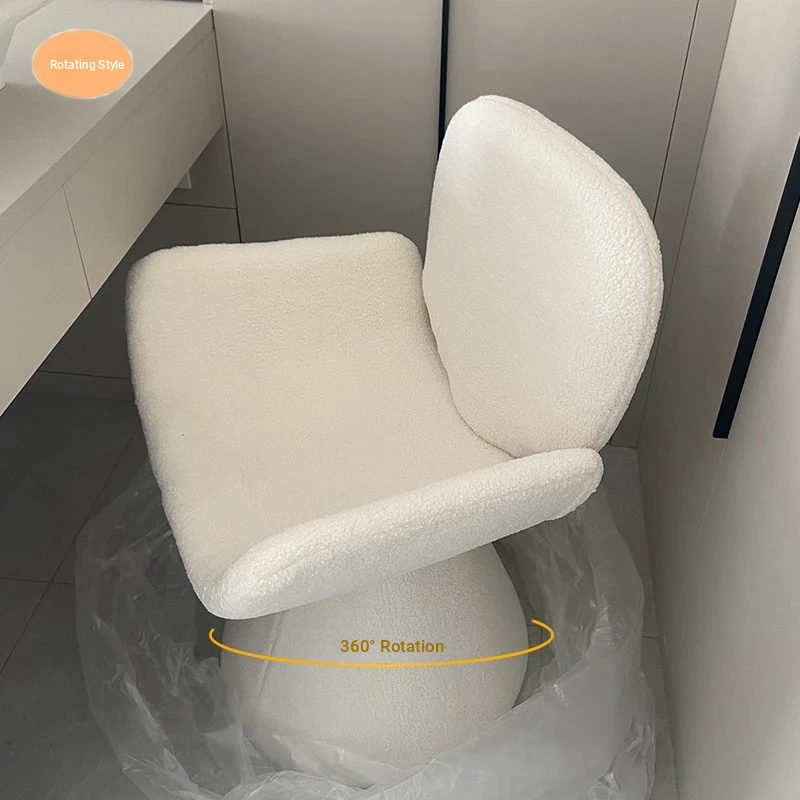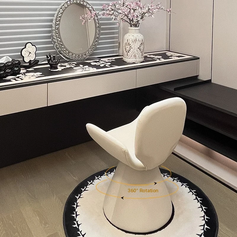 French Cream Rotating Makeup Chair - Trendy Bedroom High-End Computer Chair for Girls, Minimalist Design with Comfortable Backrest for Your Master Bedroom