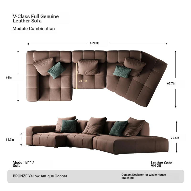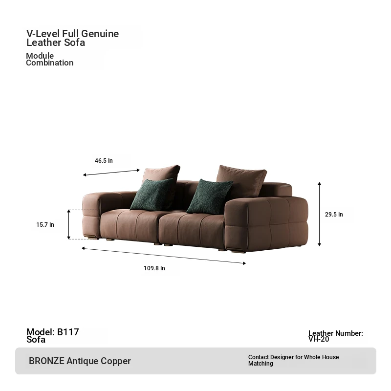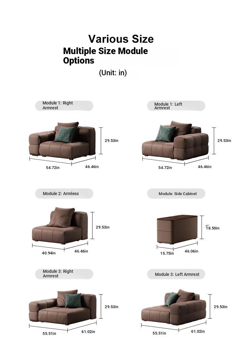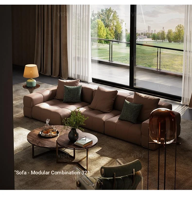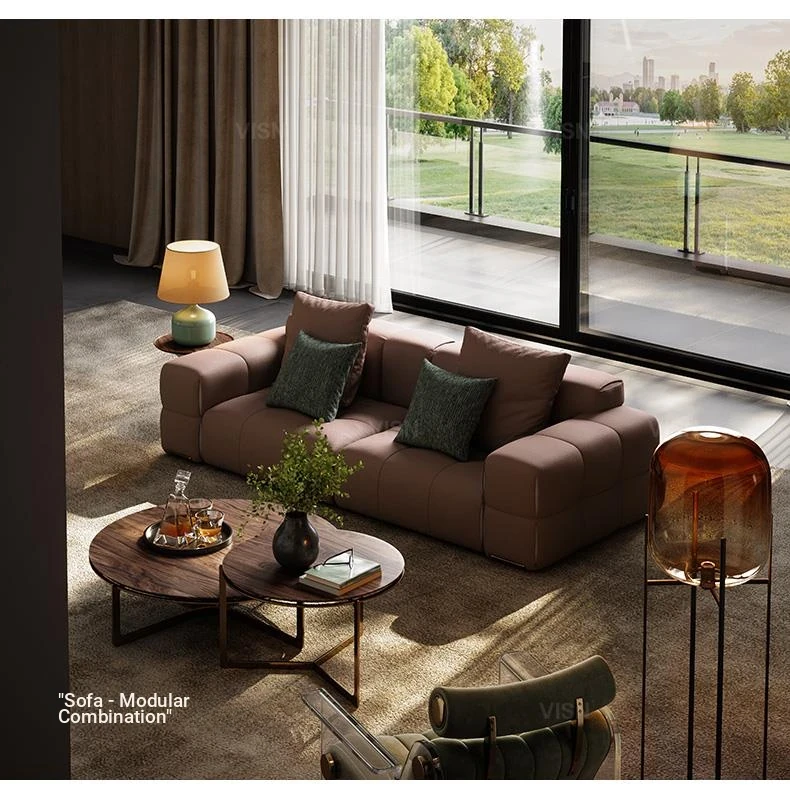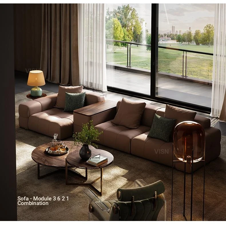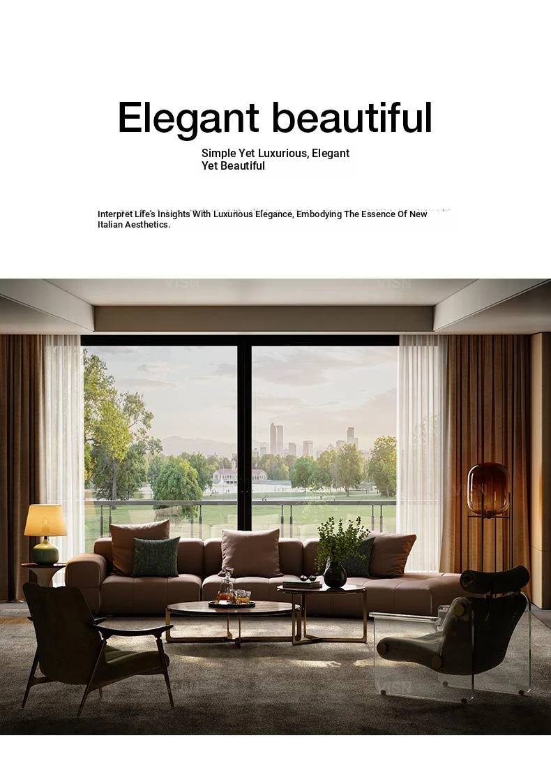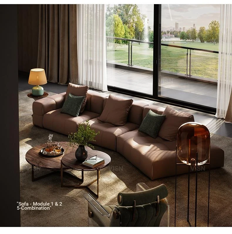 Italian Minimalist Genuine Leather Sofa - Custom High-End Modular Living Room Set for Villas