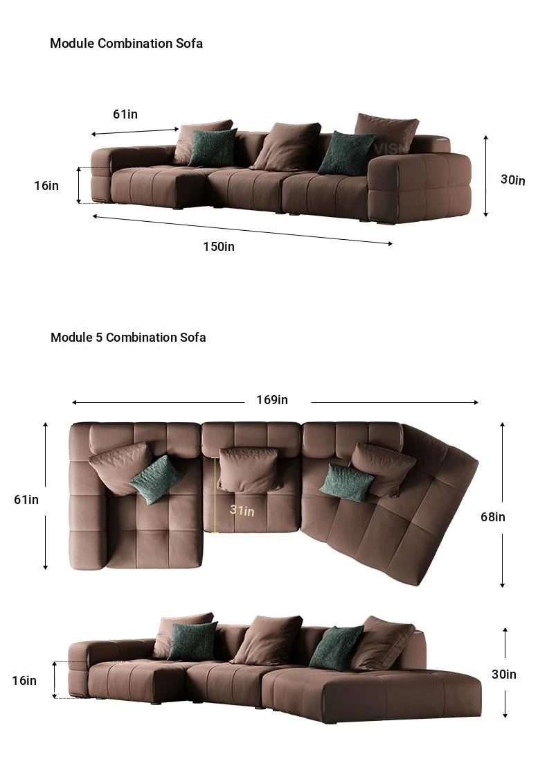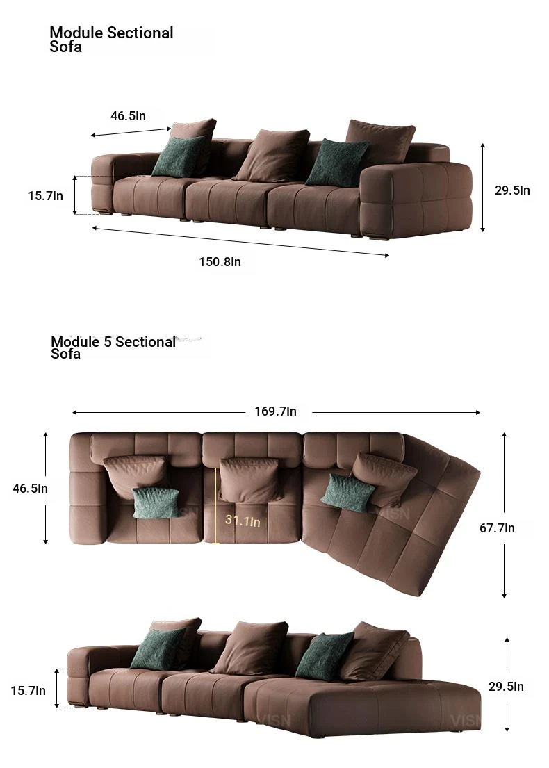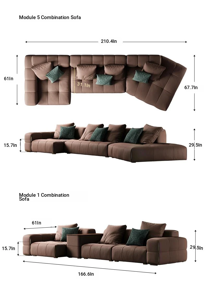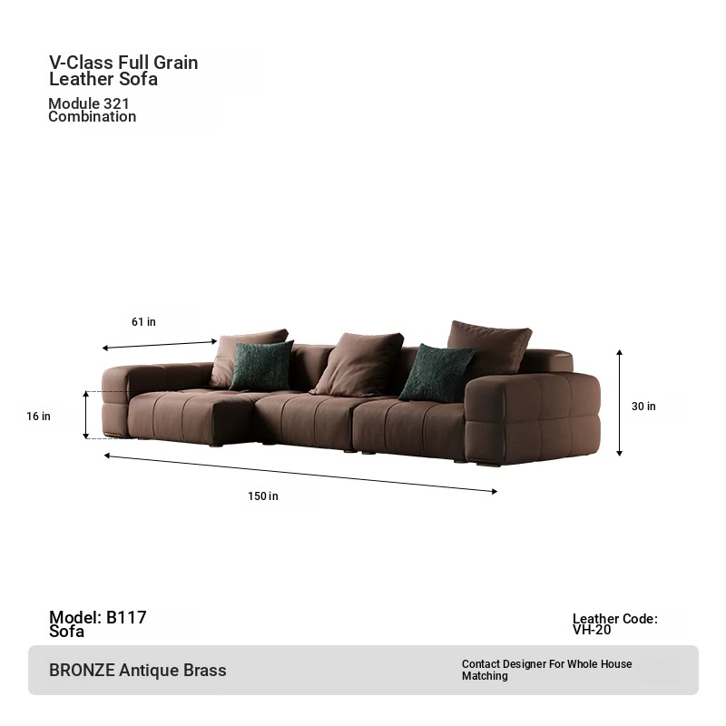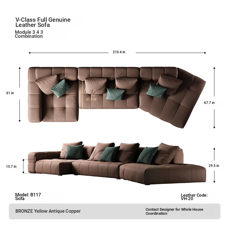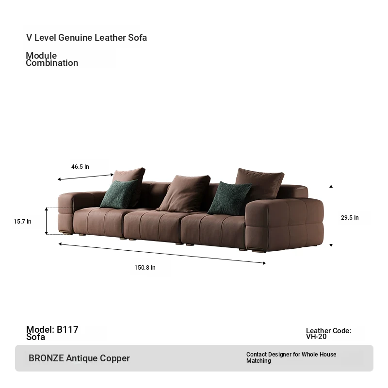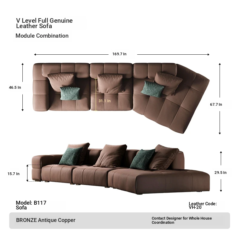 Italian Minimalist Genuine Leather Sofa - Custom High-End Modular Living Room Set for Villas