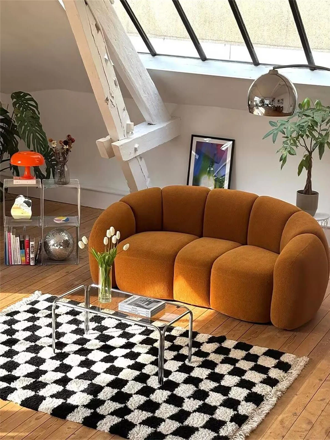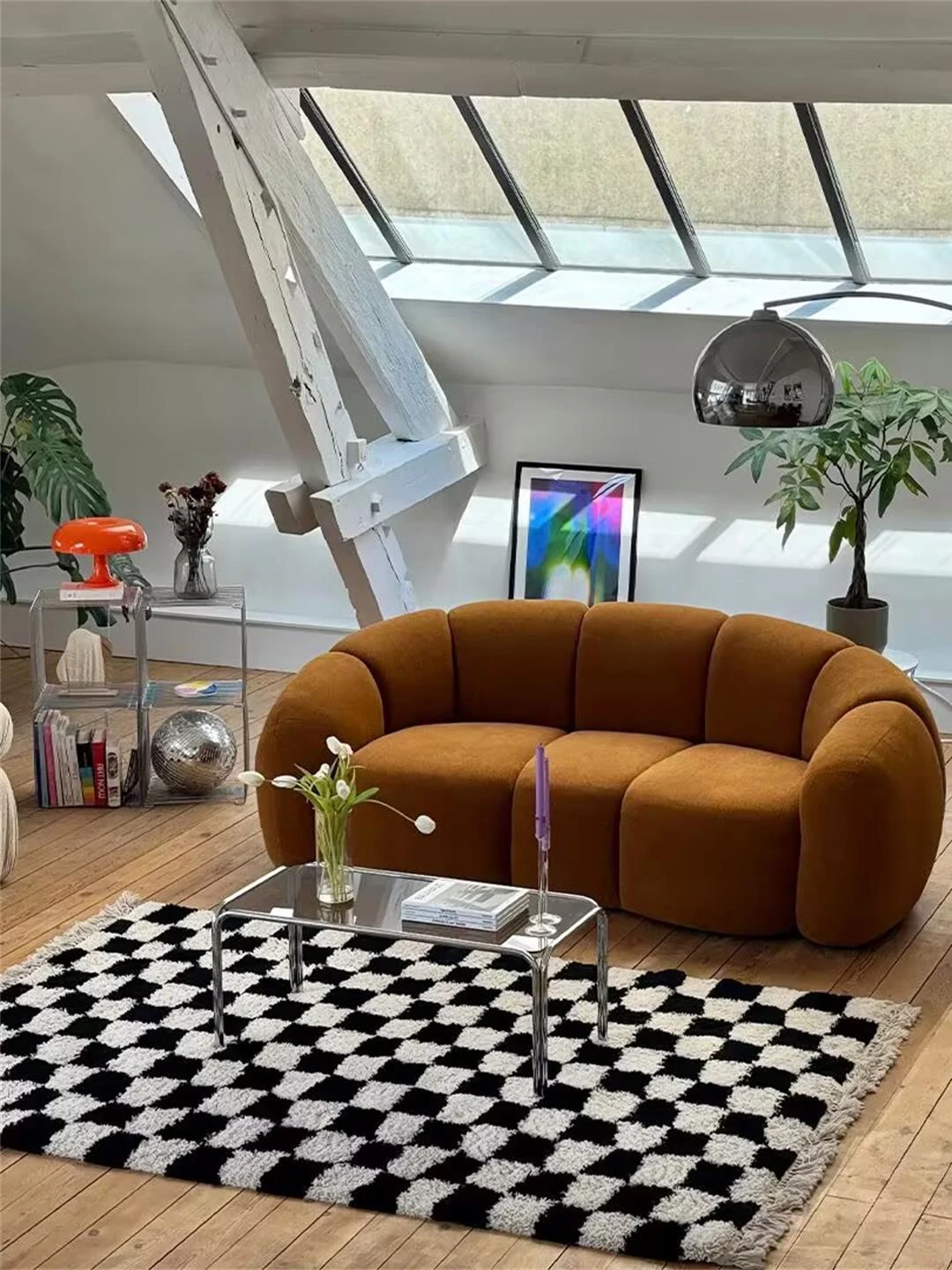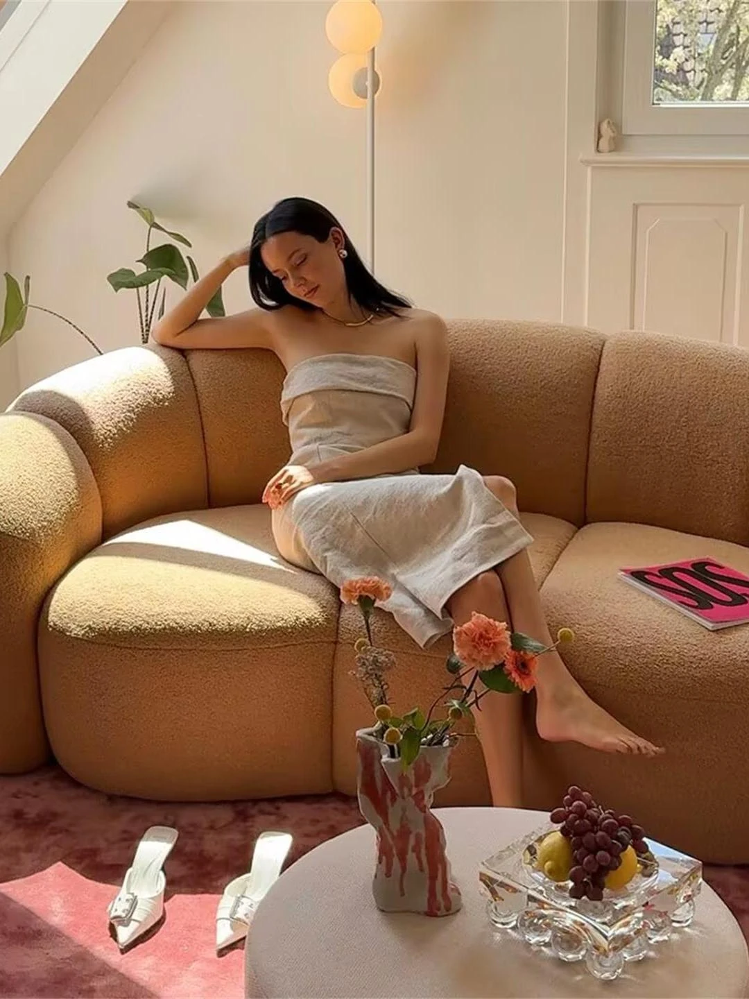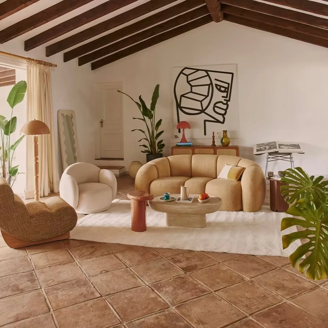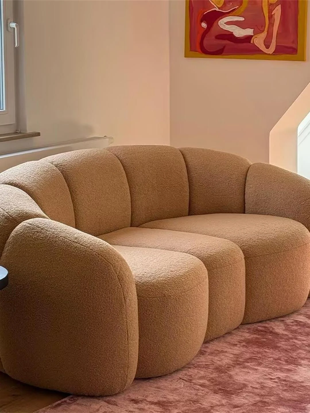Italian Minimalist Modern Curved High-End Lamb Fleece Fabric Sofa – Designer Cream-Style Curved Sofa for a Chic Living Room