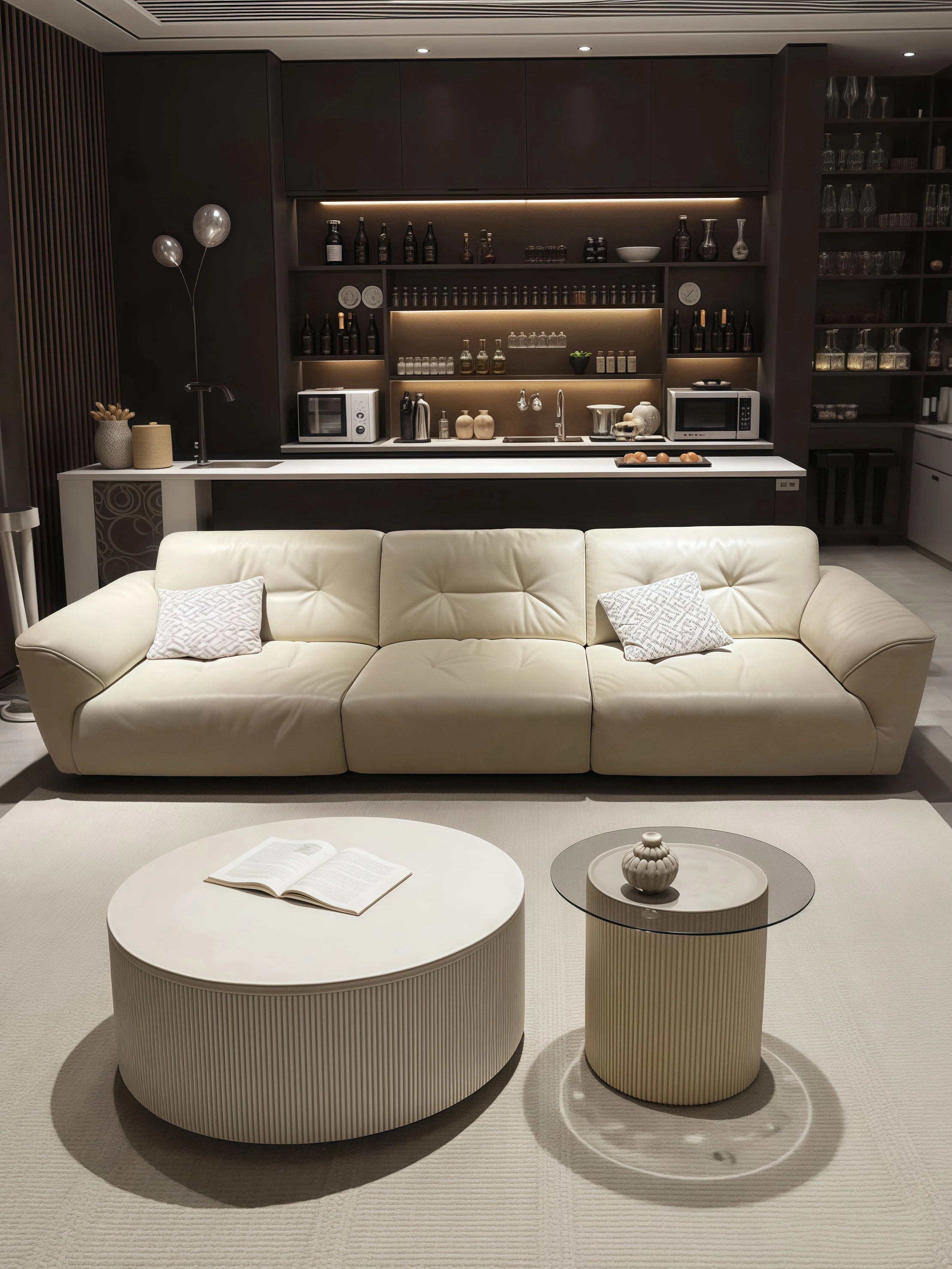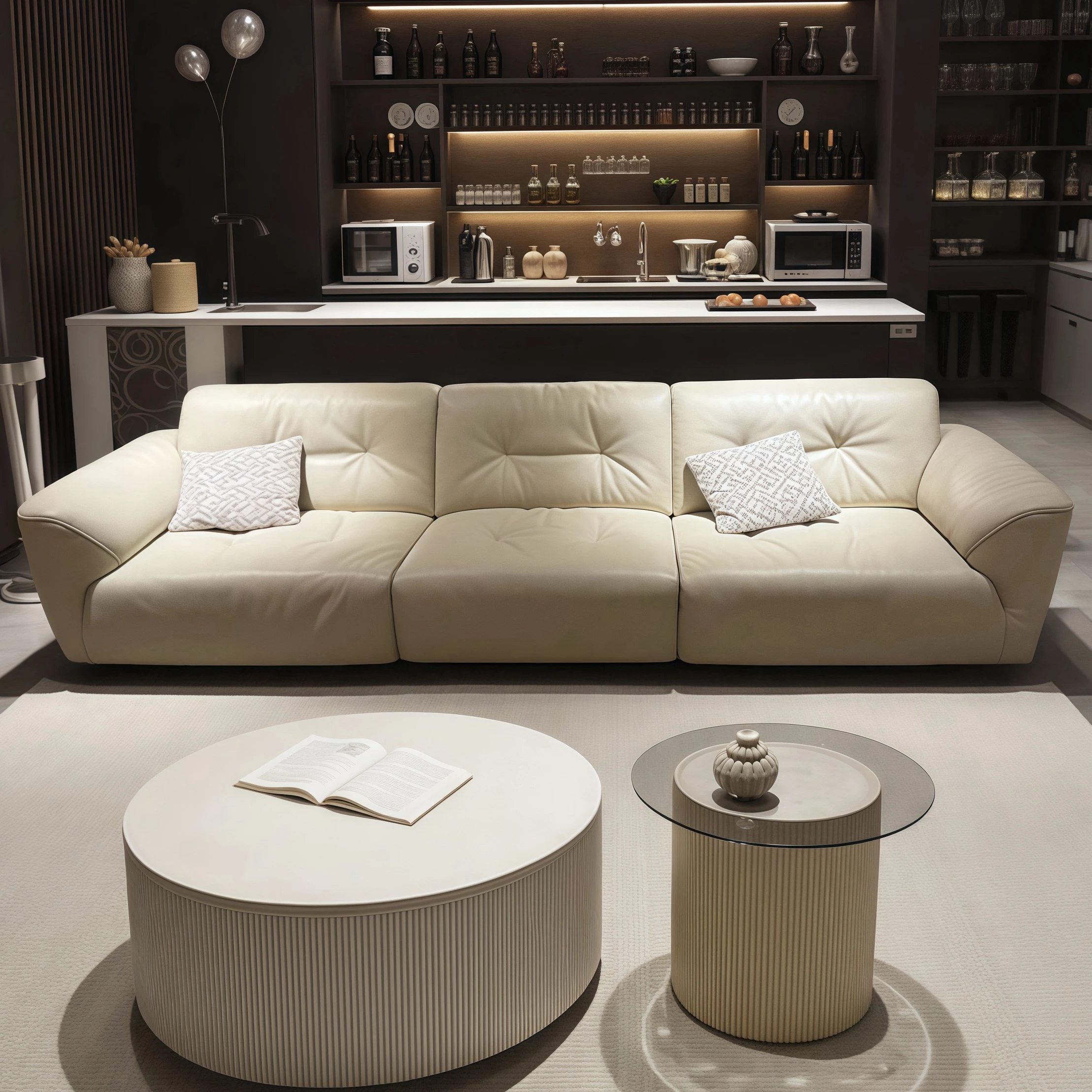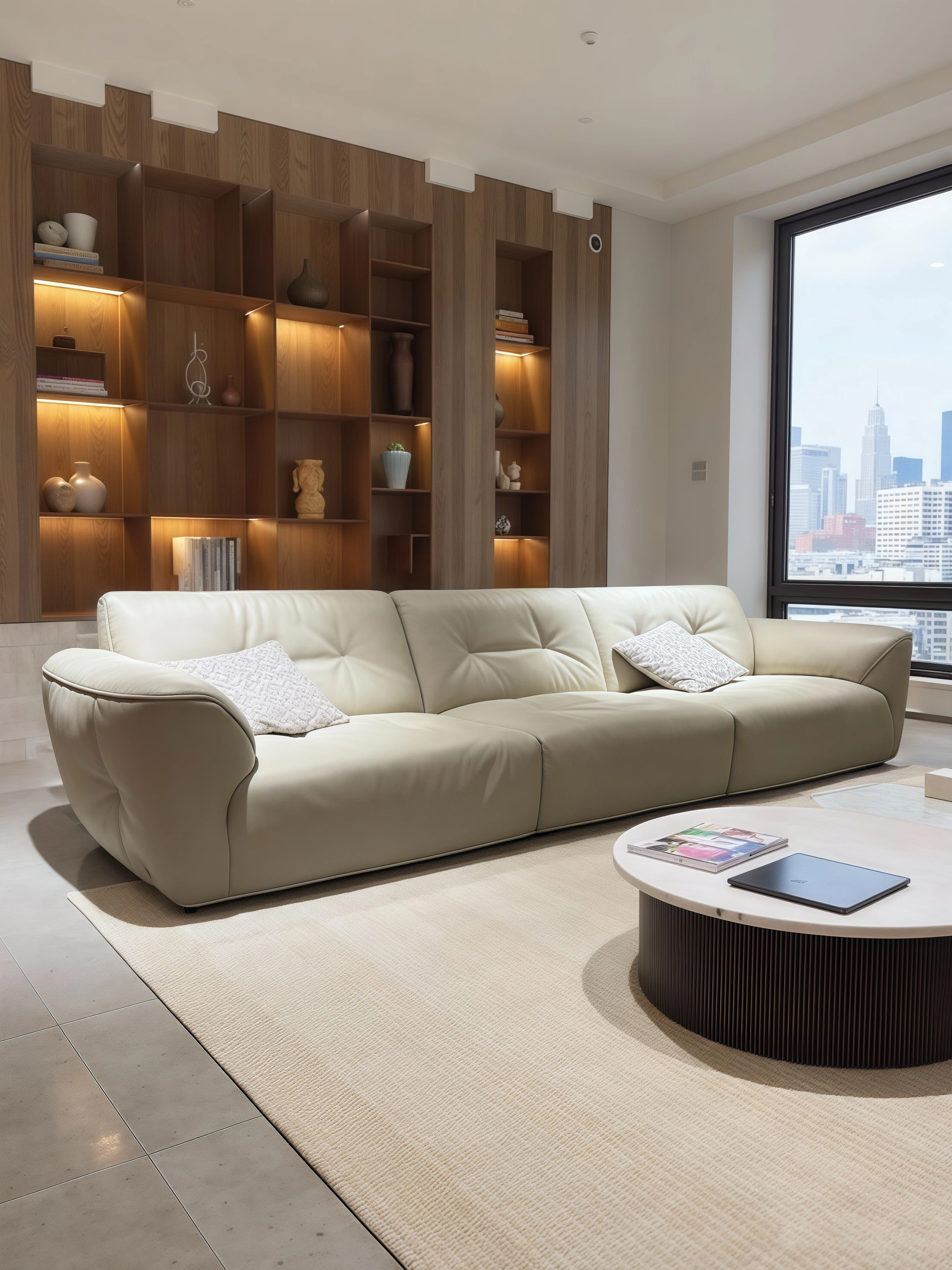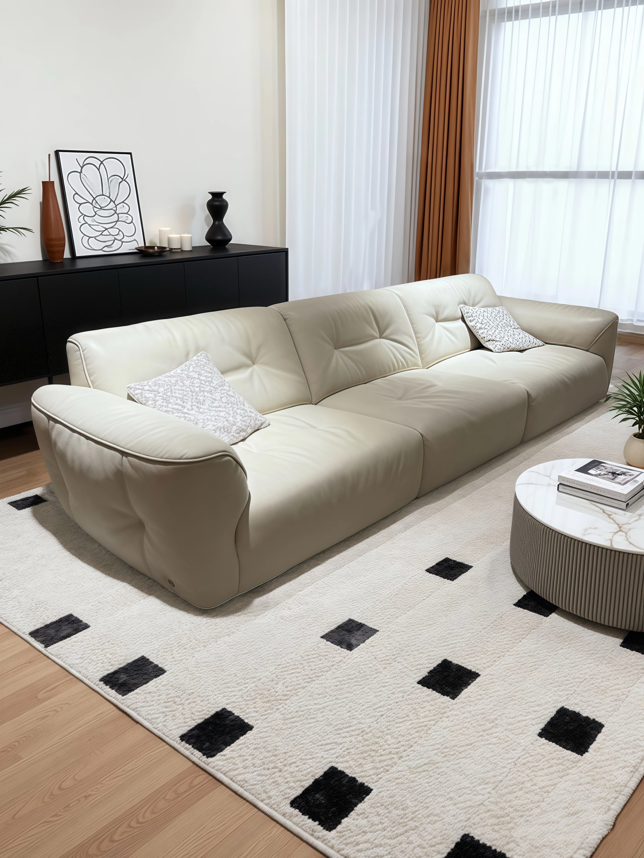 Italian Minimalist Semi-Leather Sofa - Modern and Simple Design for Villas and Apartments, Perfectly Suited for Living Rooms with Straight-Line Structure, All-Leather Upholstery for Ultimate Comfort and Style.