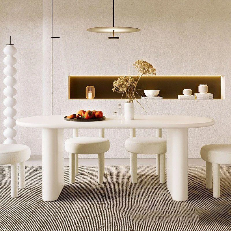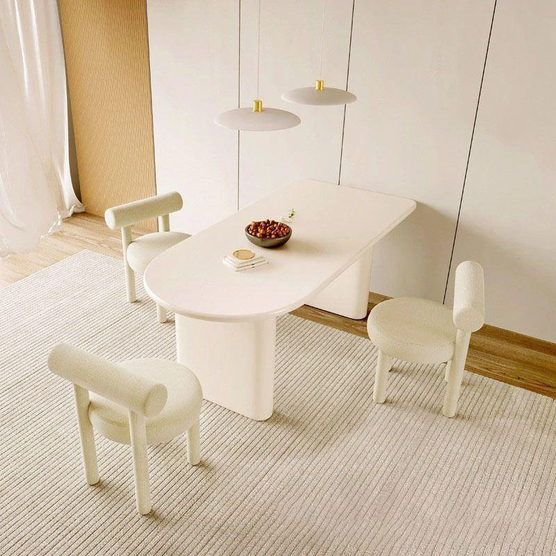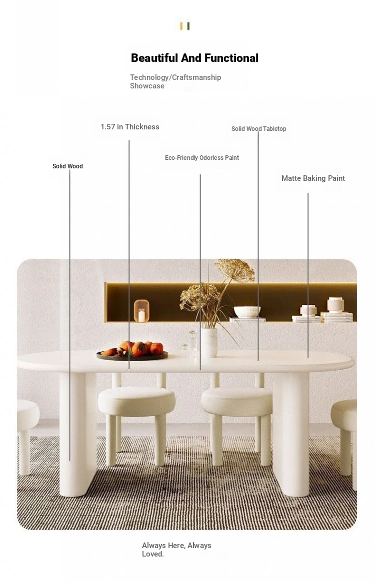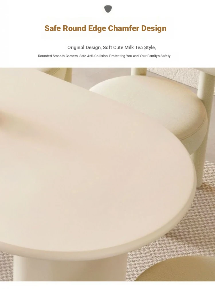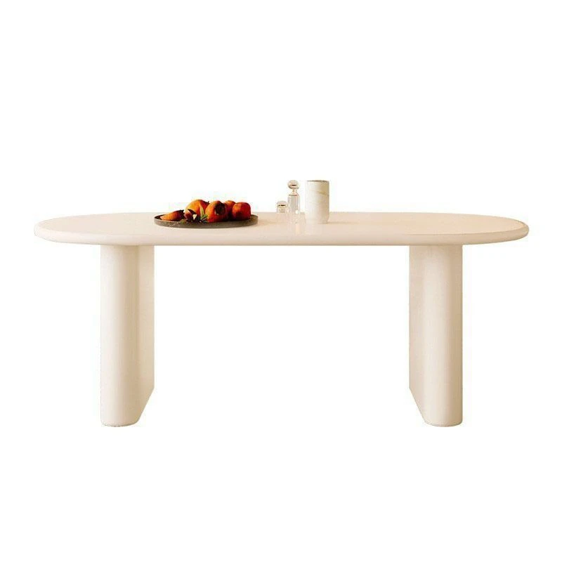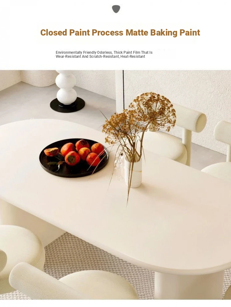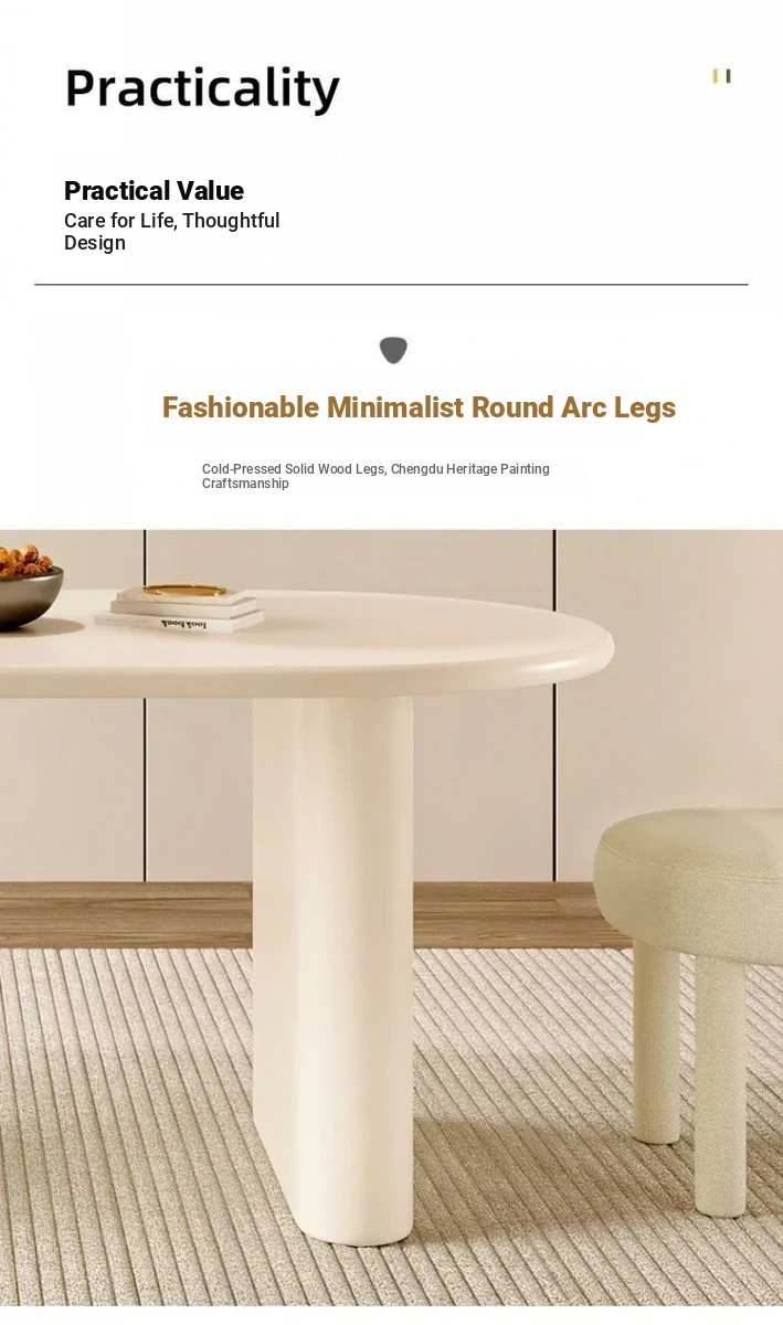 Nordic Creamy Solid Wood Dining Table - Modern Minimalist Oval Design for Small Spaces, Perfect for Home Dining and Elegant Restaurants