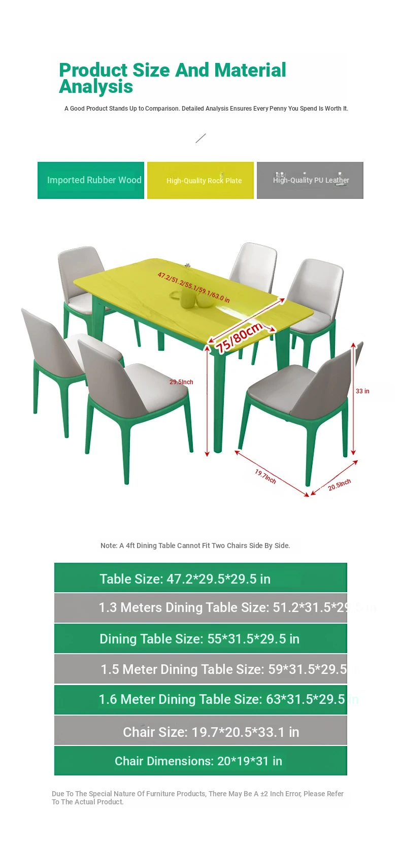 Log color, 59.06in a table of six chairs
