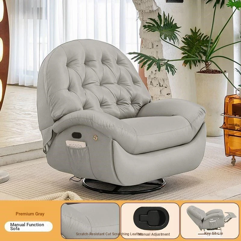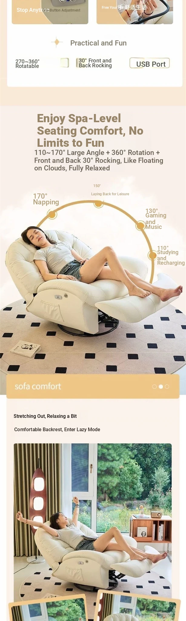 Reclining Electric Lazy Sofa with Rotating Headrest - Multi-functional Space-saving Armchair for Bedroom and Living Room, Perfect Single Rocking Chair for Ultimate Comfort