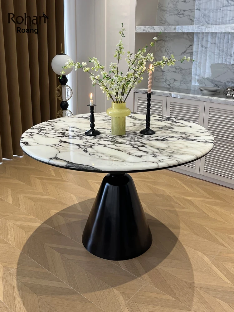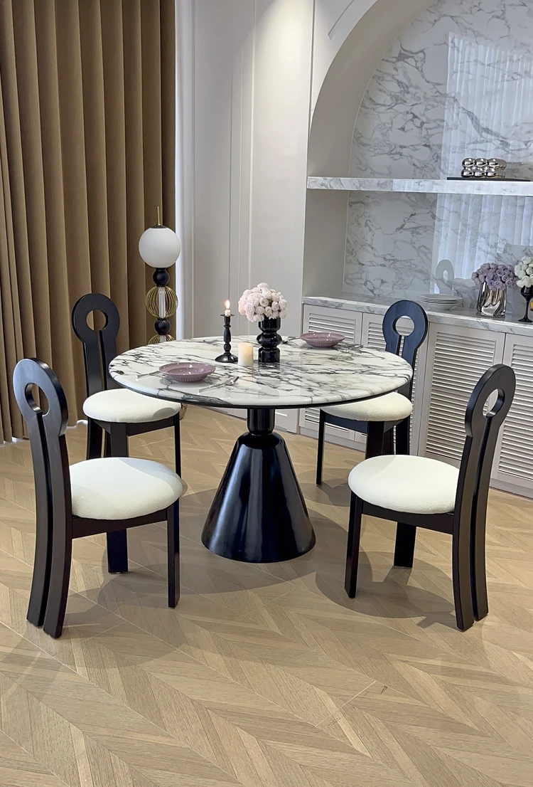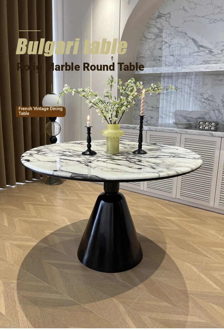Rococo-Inspired French Vintage Bulgari Goblet Round Marble Dining Table - Elegant Designer Dining Experience with Luxurious Appeal