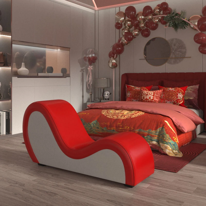 Red and white chaise longue(Wedding Gift Wedding Room Sofa)