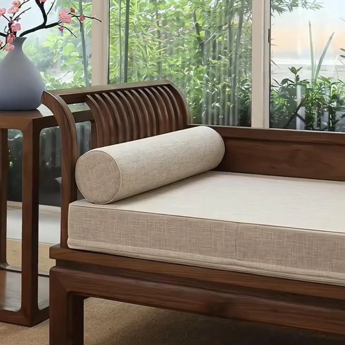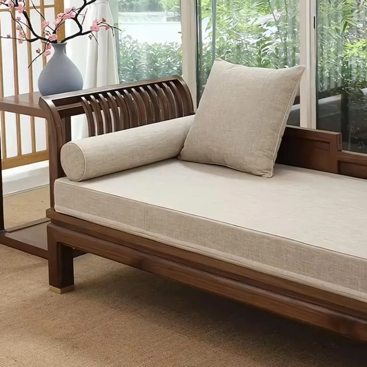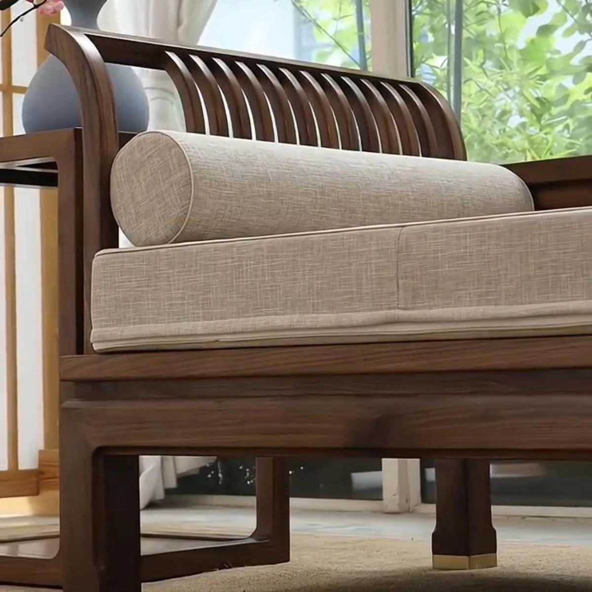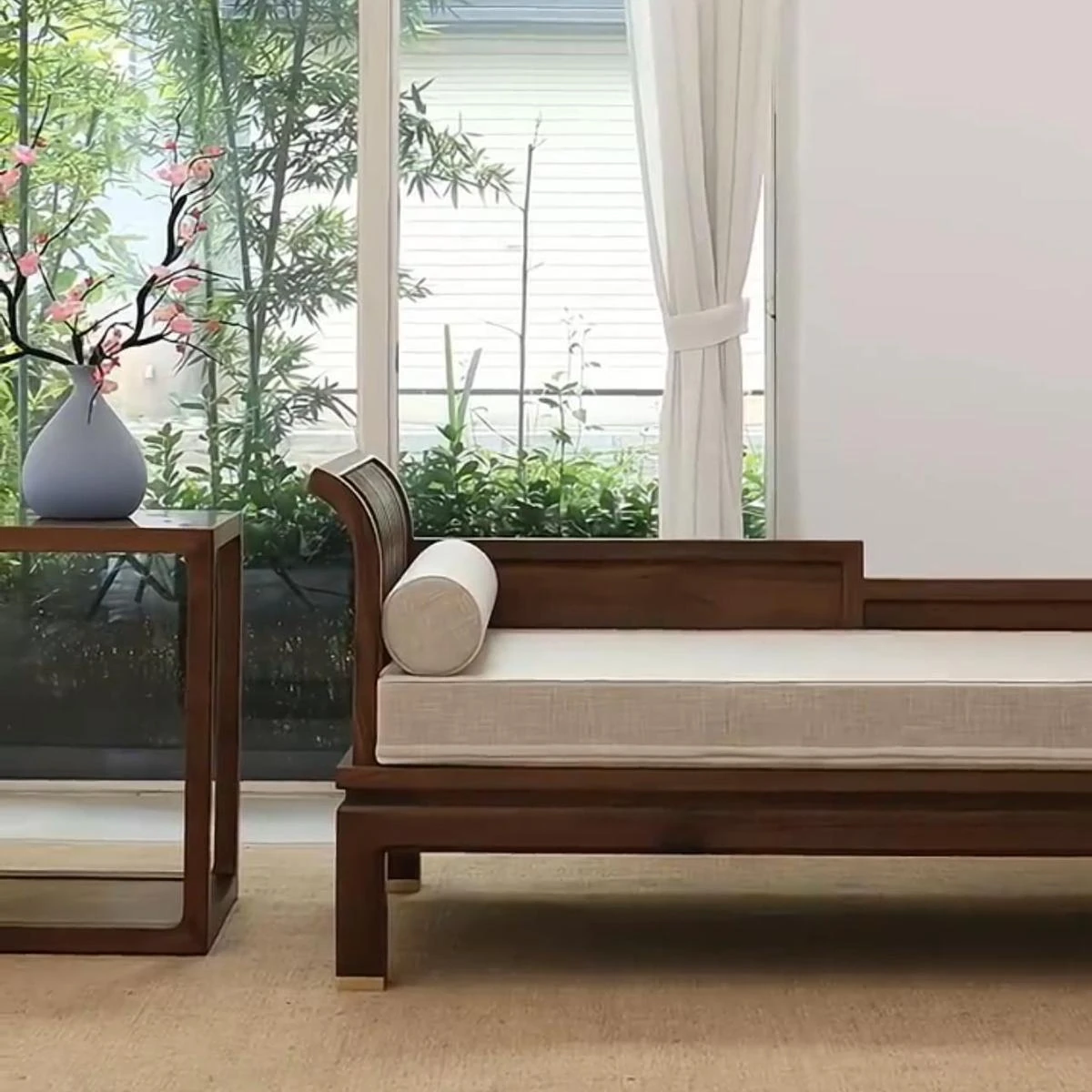 Zen-Inspired New Chinese Style Chaise Lounge Sofa Bed in North American Black Walnut and Ash Wood - Perfect for Offices, Hotels, and Homestays, Elevate Your Living Room with Elegant Furniture