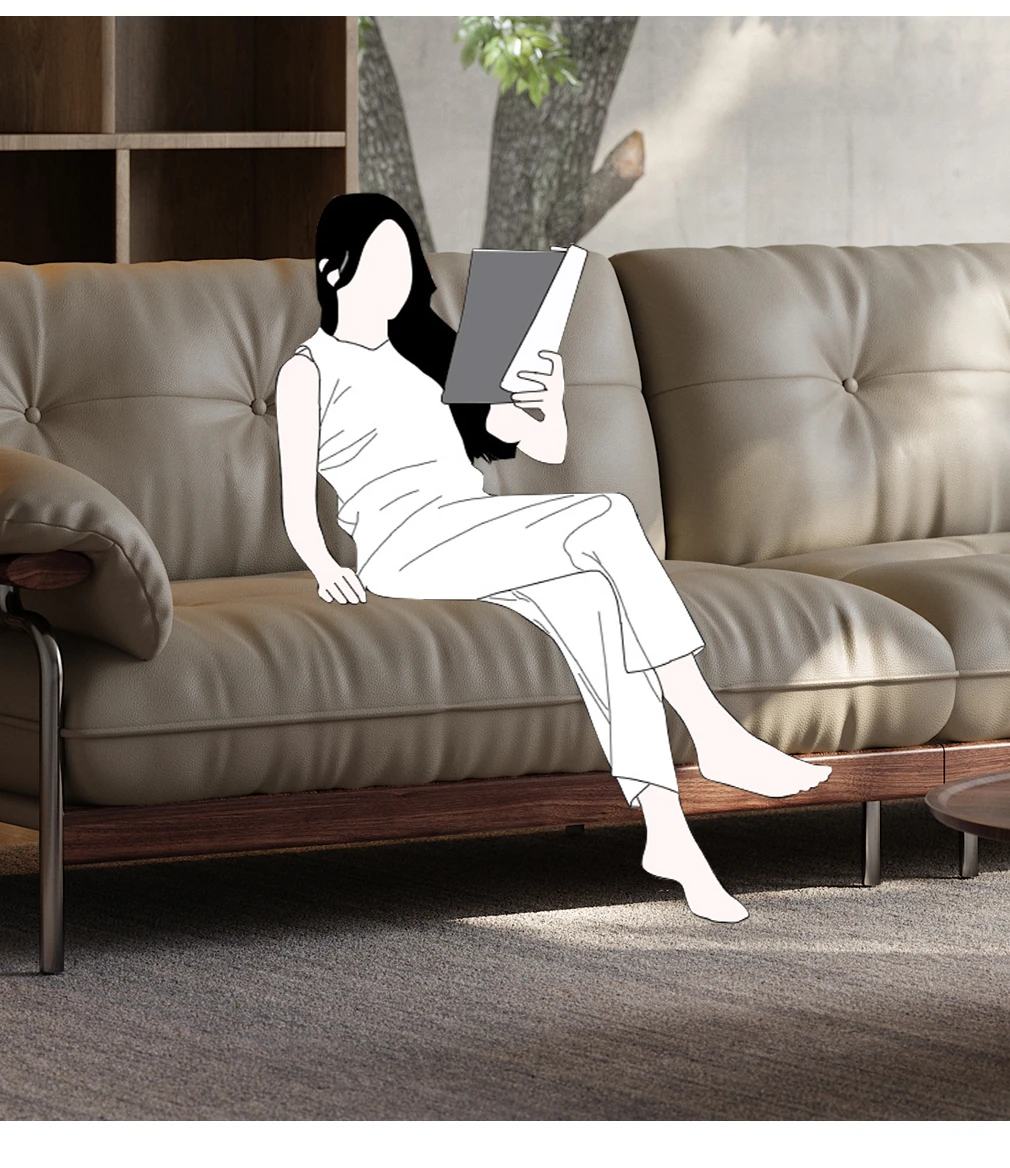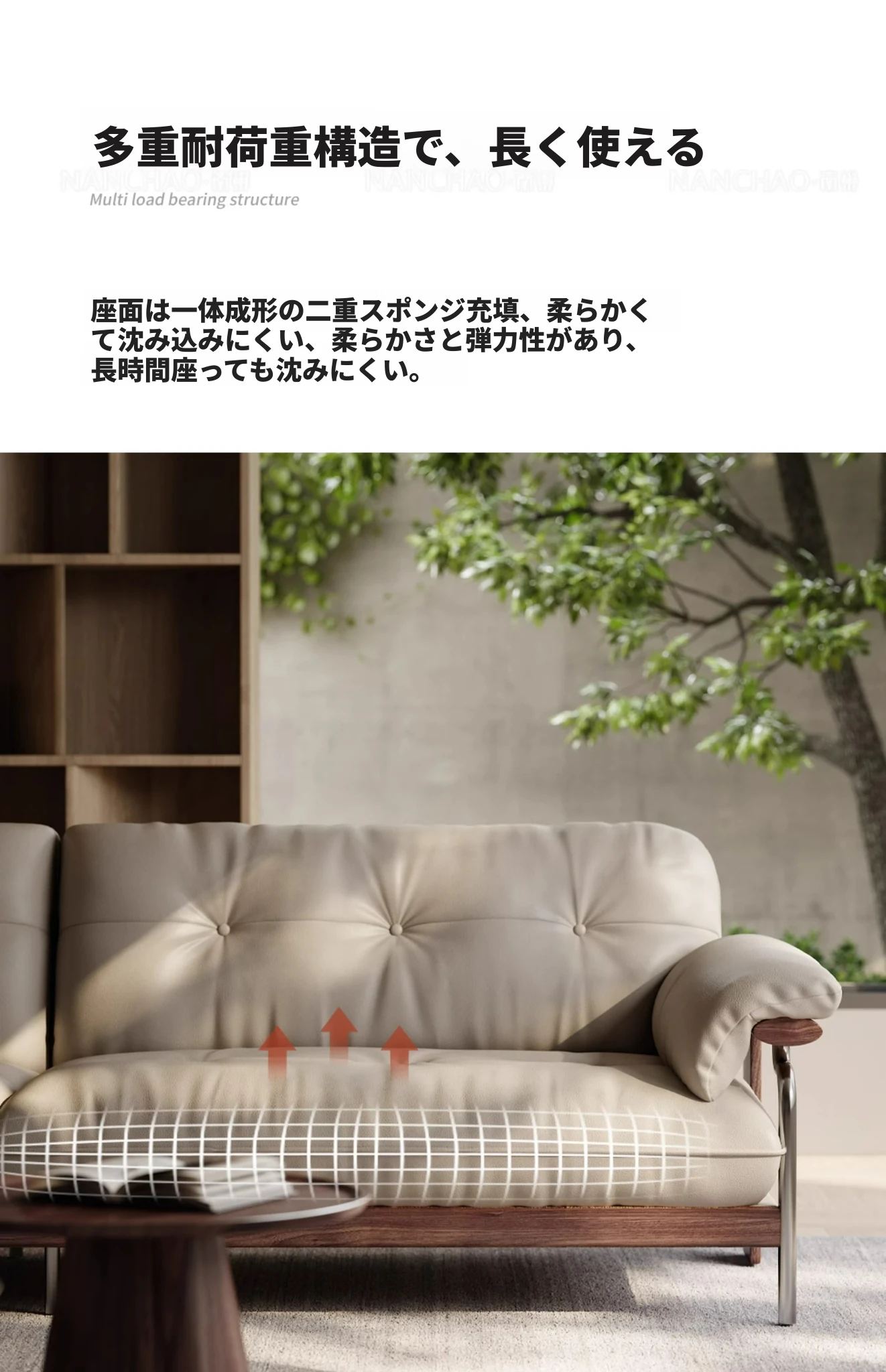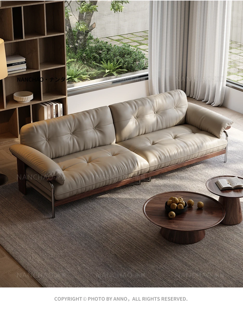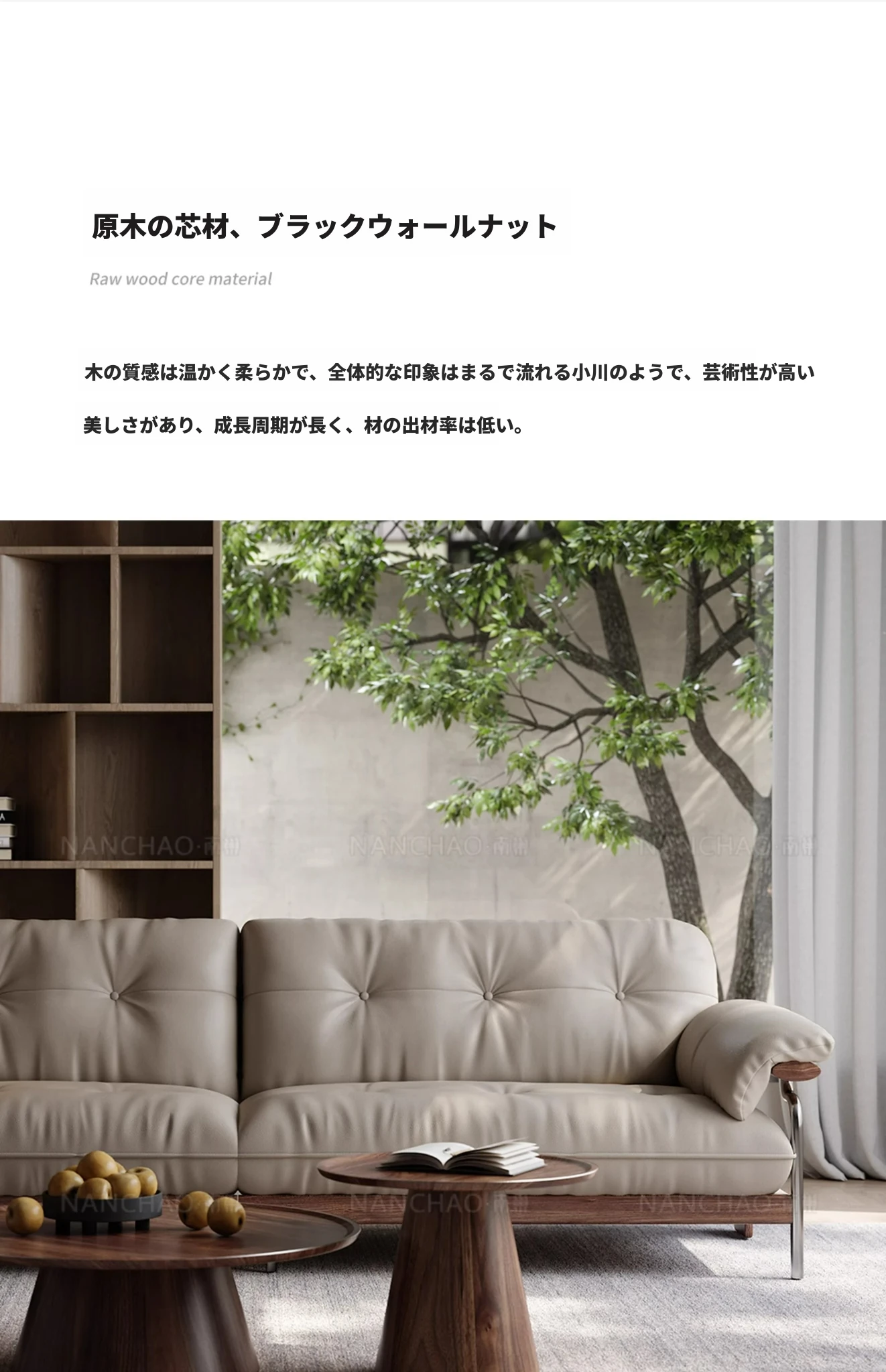 2025年新款!イタリアンミニマリズムデザインの本革ソファ。黒胡桃の無垢材使用、狭いリビングにもぴったりなスタイリッシュな直排型。最高級のトップグレイン牛革で、贅沢な座り心地を体験してください!