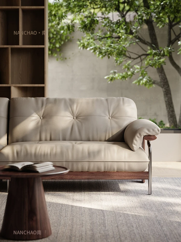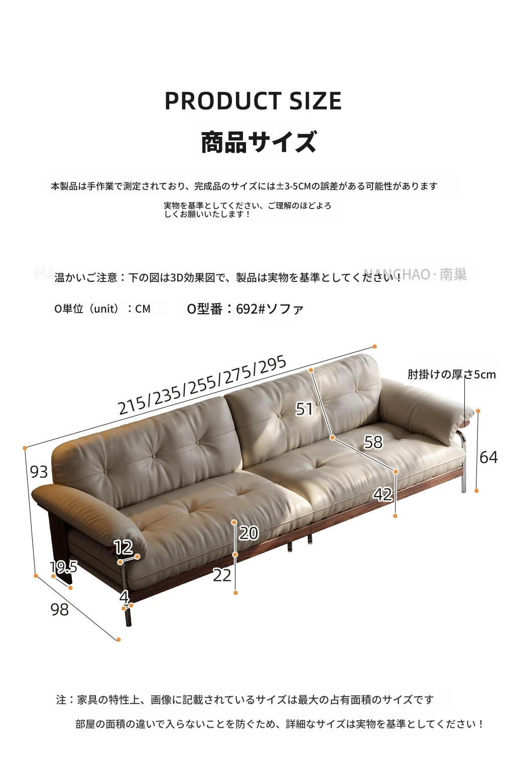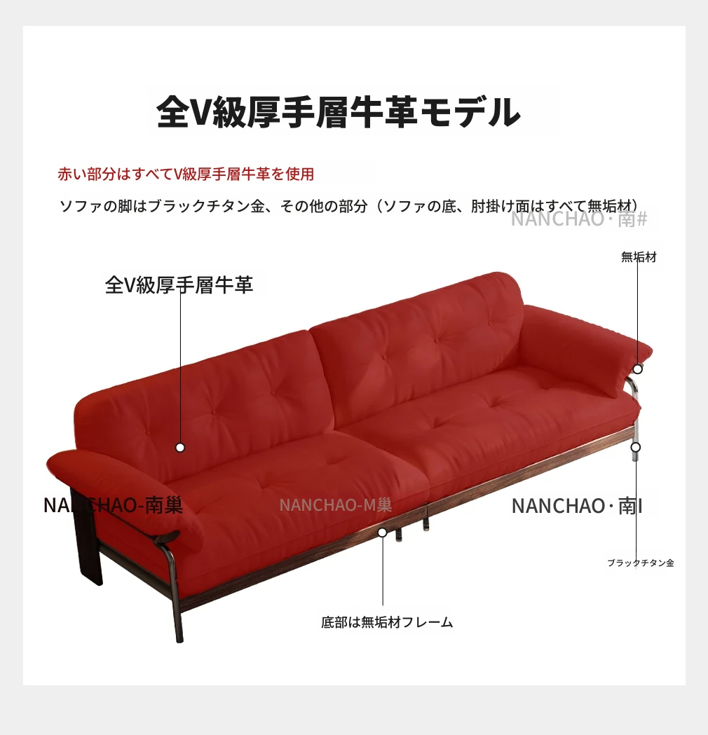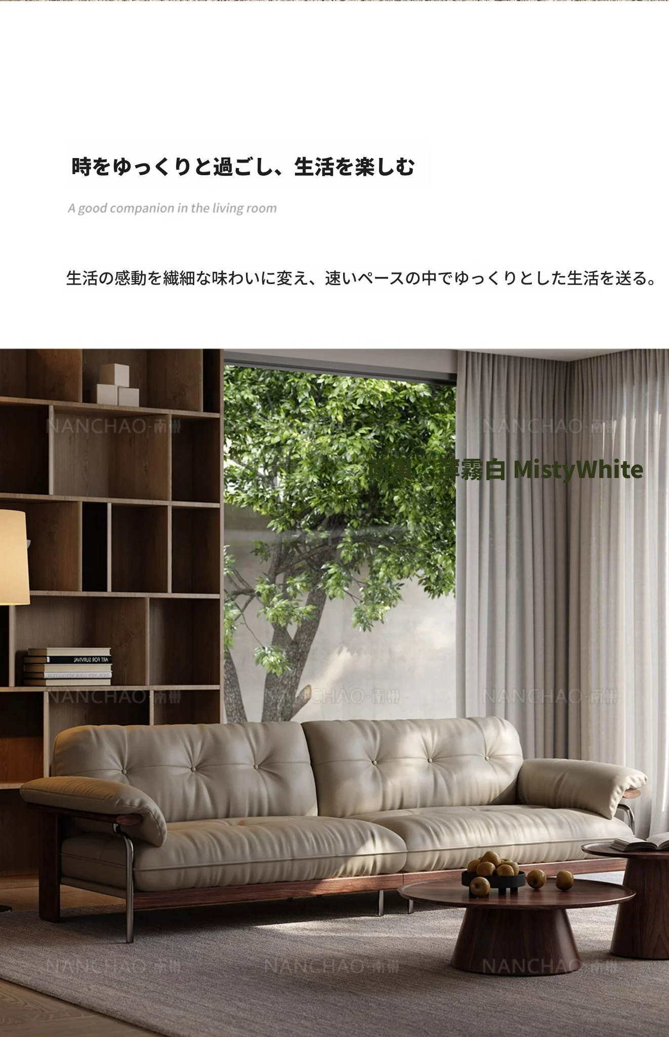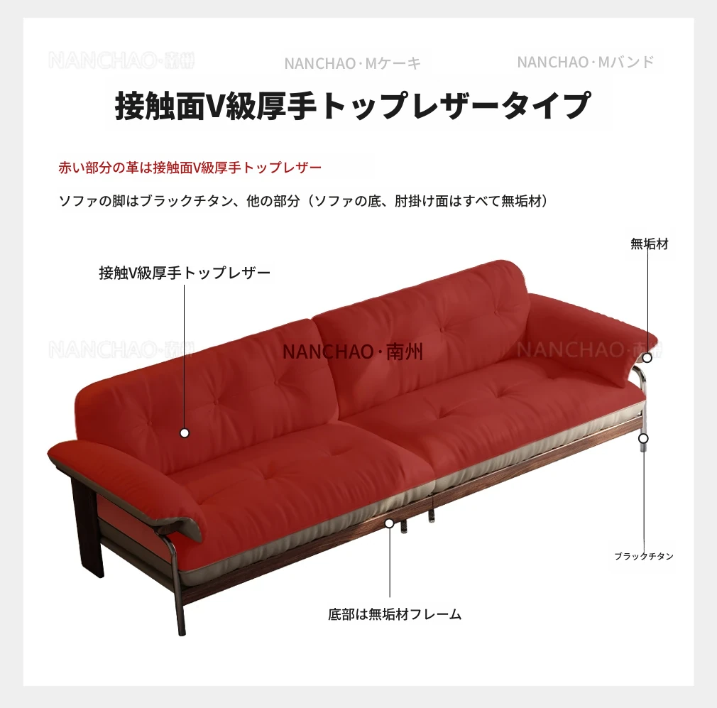 2025年新款!イタリアンミニマリズムデザインの本革ソファ。黒胡桃の無垢材使用、狭いリビングにもぴったりなスタイリッシュな直排型。最高級のトップグレイン牛革で、贅沢な座り心地を体験してください!