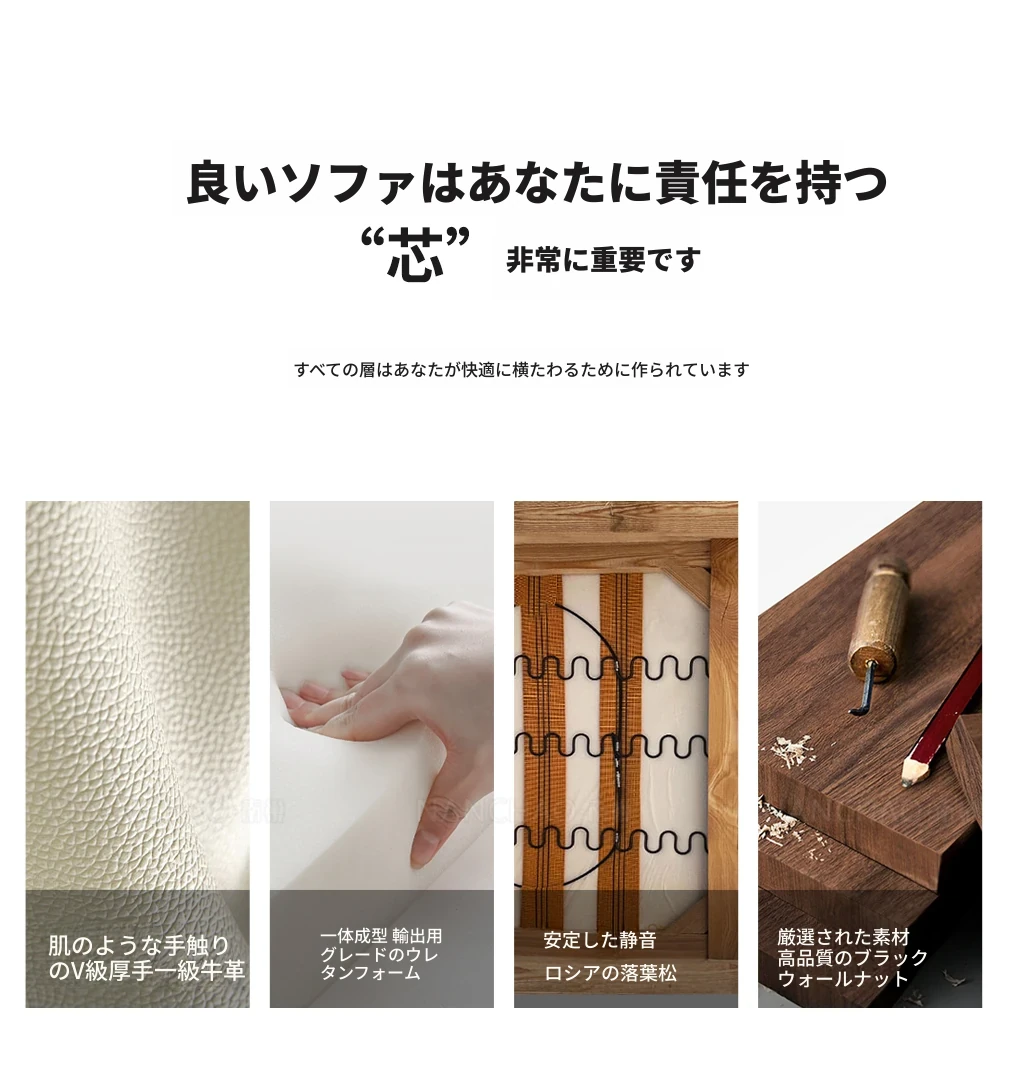 【フラッグシップ版-280cm大4人用】V級厚手トップグレード牛革+ブラックウォールナット+高反発ハニカム透湿一体型スポンジ+白いガチョウの羽毛