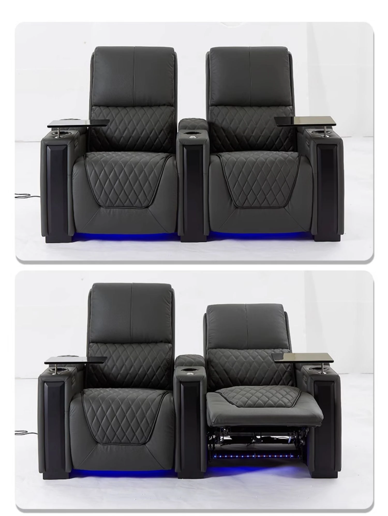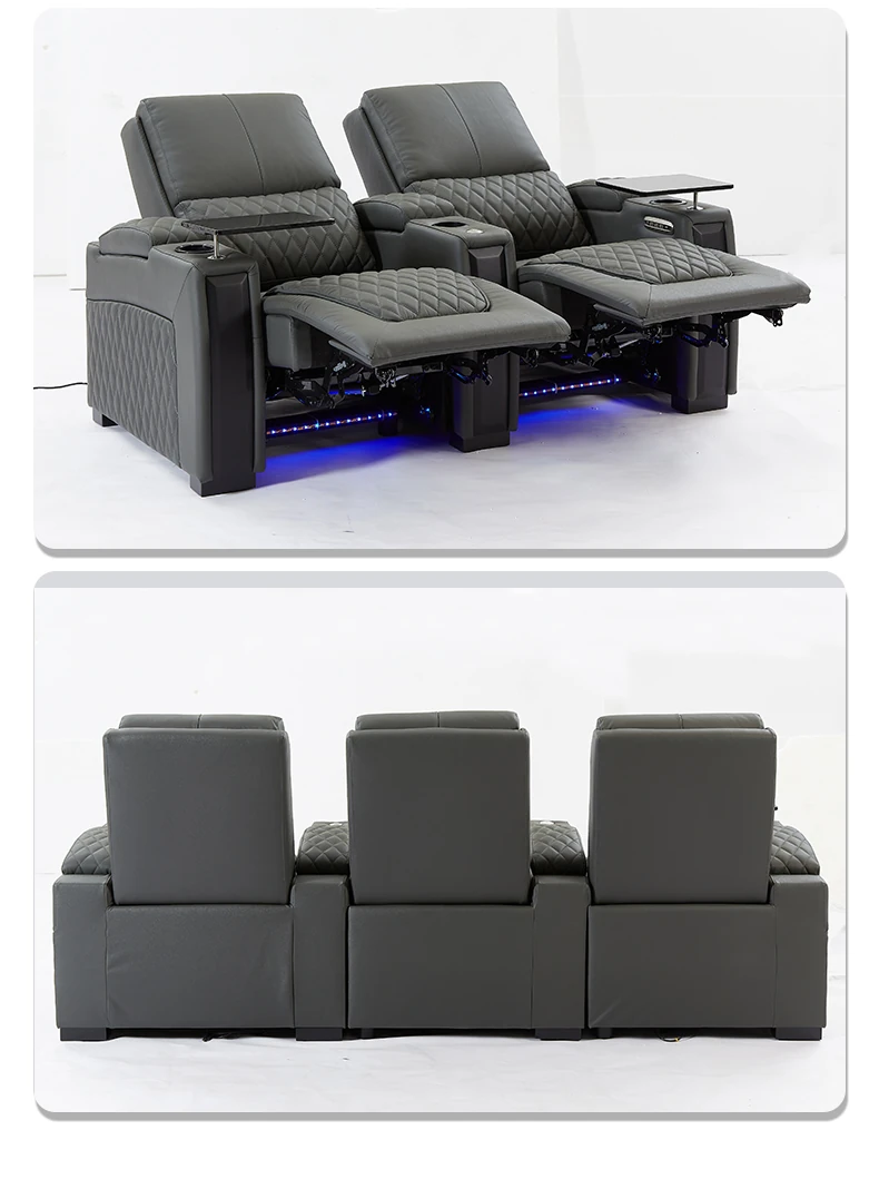 3人掛け小型電動機能付きホームシアターソファ 高背もたれ 本革製 リビングルームに最適なスタイリッシュなデザインで、快適な視聴体験を提供します!