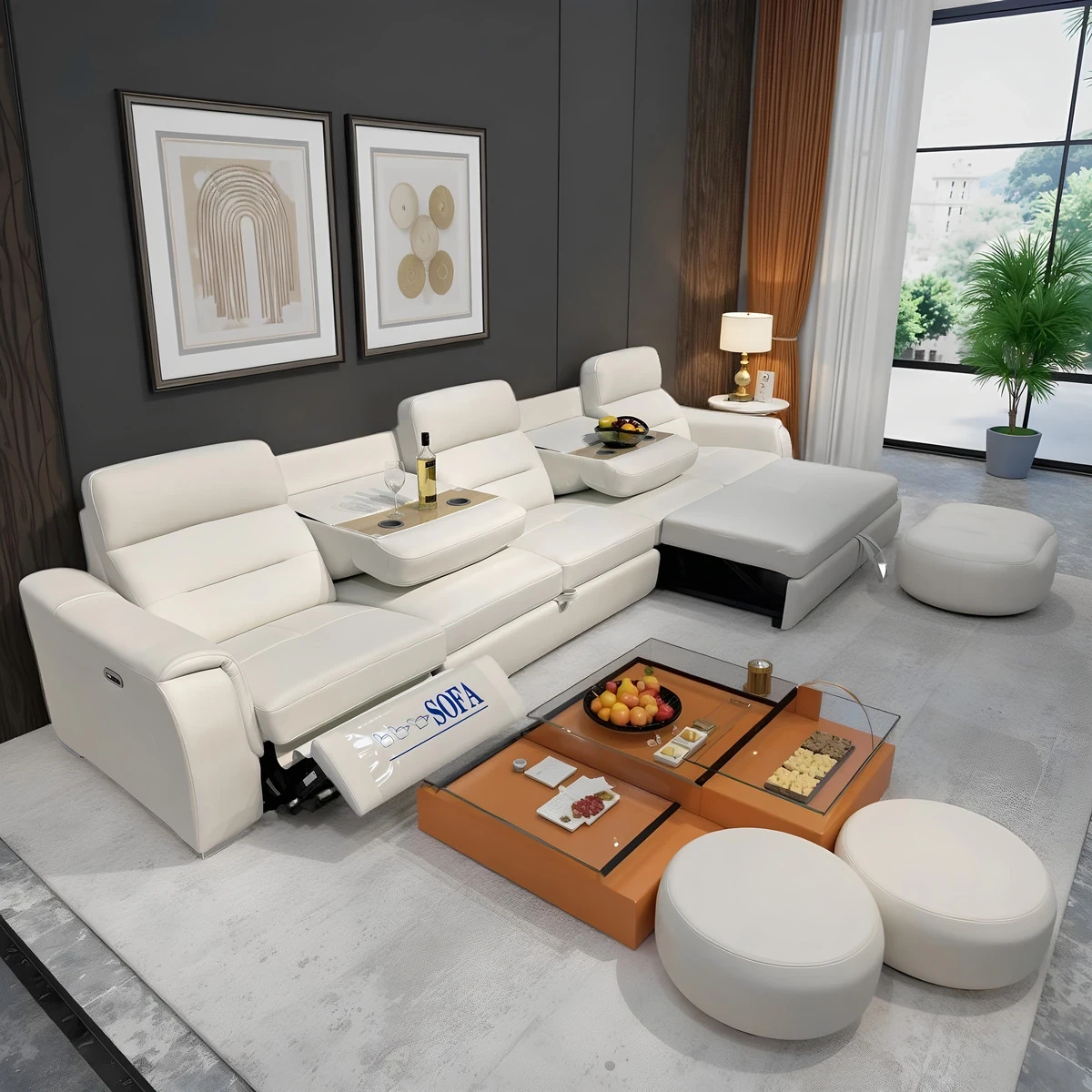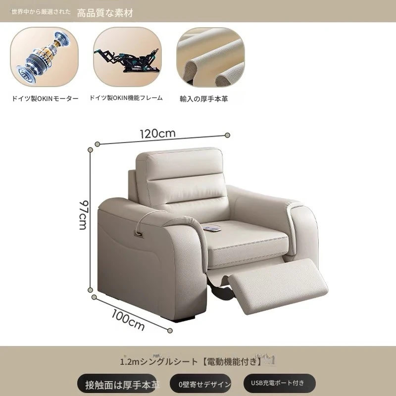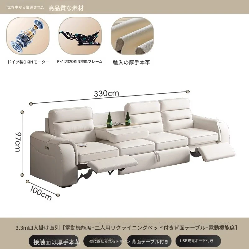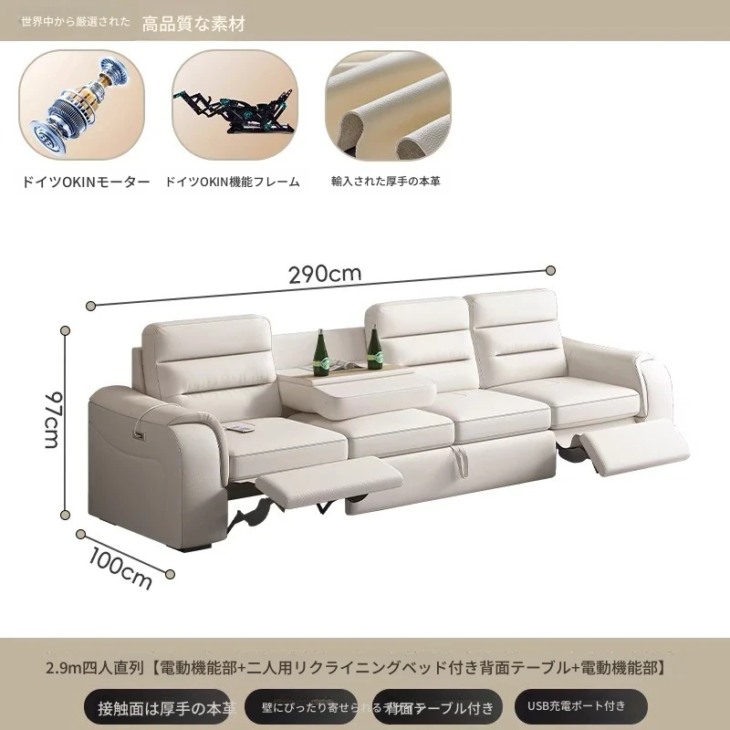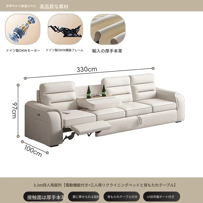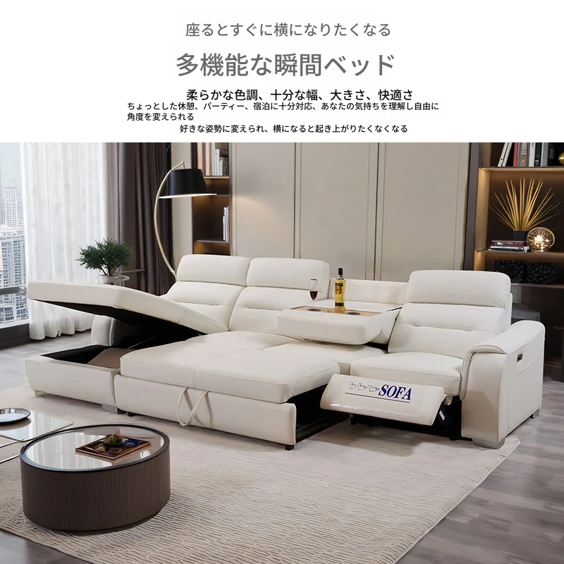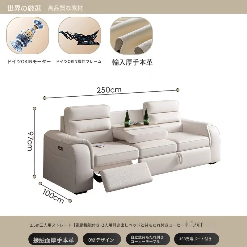 電動機能ソファ 壁に寄り添うスペースセーバー型 折りたたみ式本革 リビングルームに最適 小型住宅向け 収納付きカウチソファベッド
