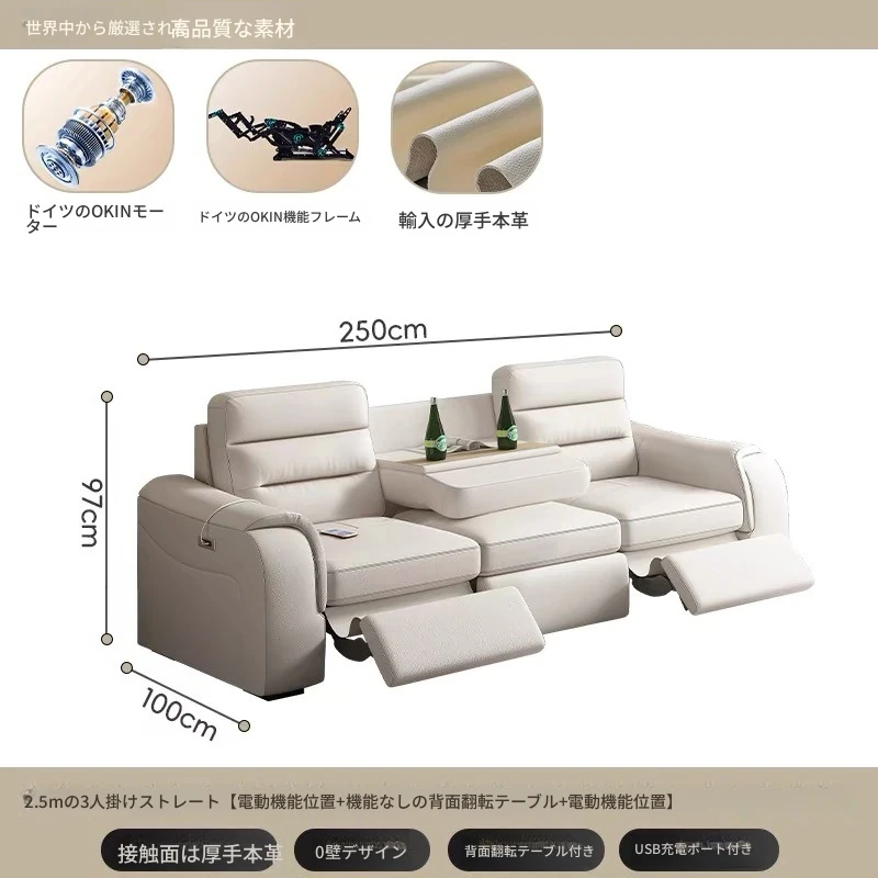 2.5m三人直排【双辺電動+翻背テーブル付き】接触面真皮