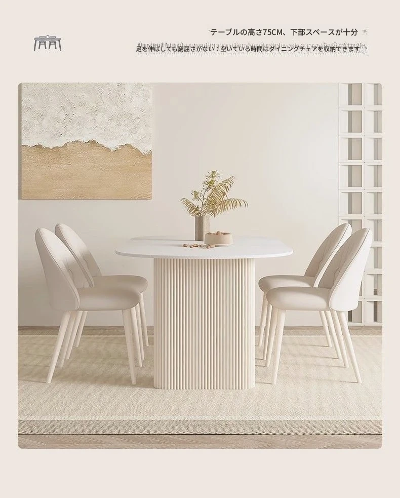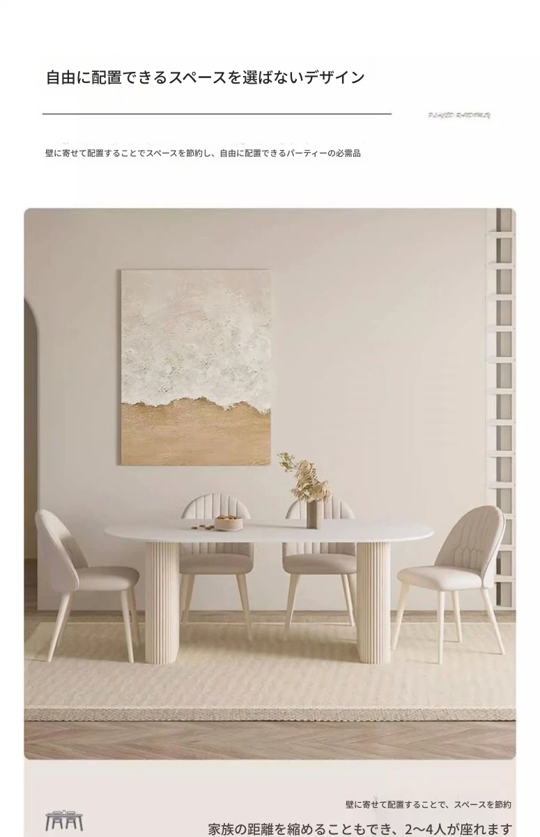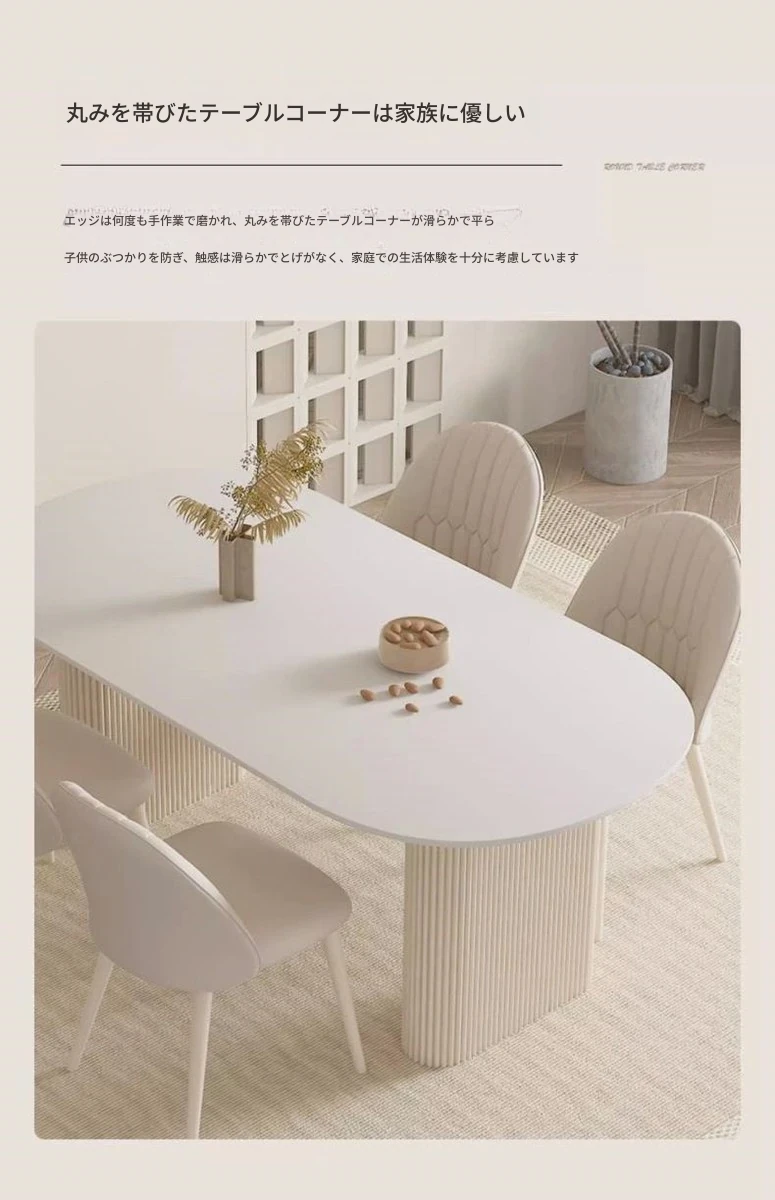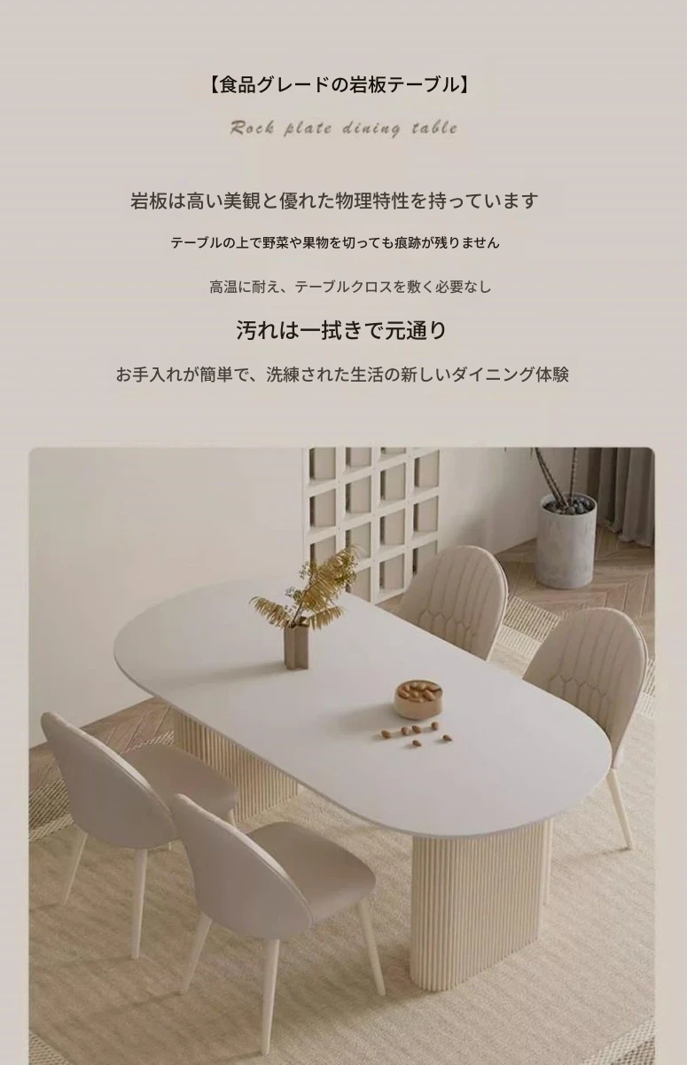クリーム風の純白の岩板ダイニングテーブル|モダンでシンプルな軽奢スタイル|小スペースにもぴったりなフレンチスタイルのコンビネーション家具