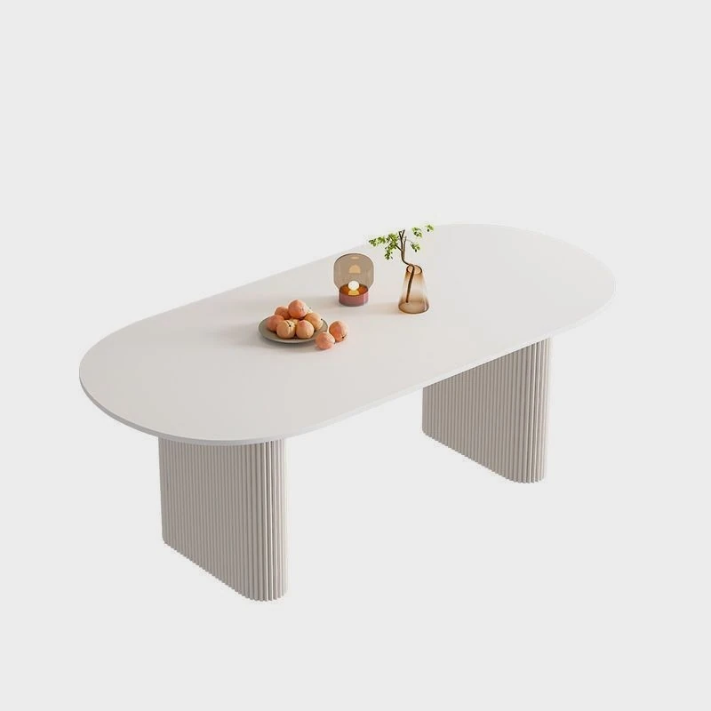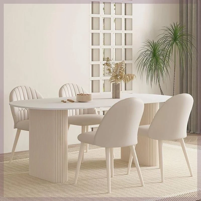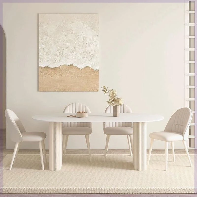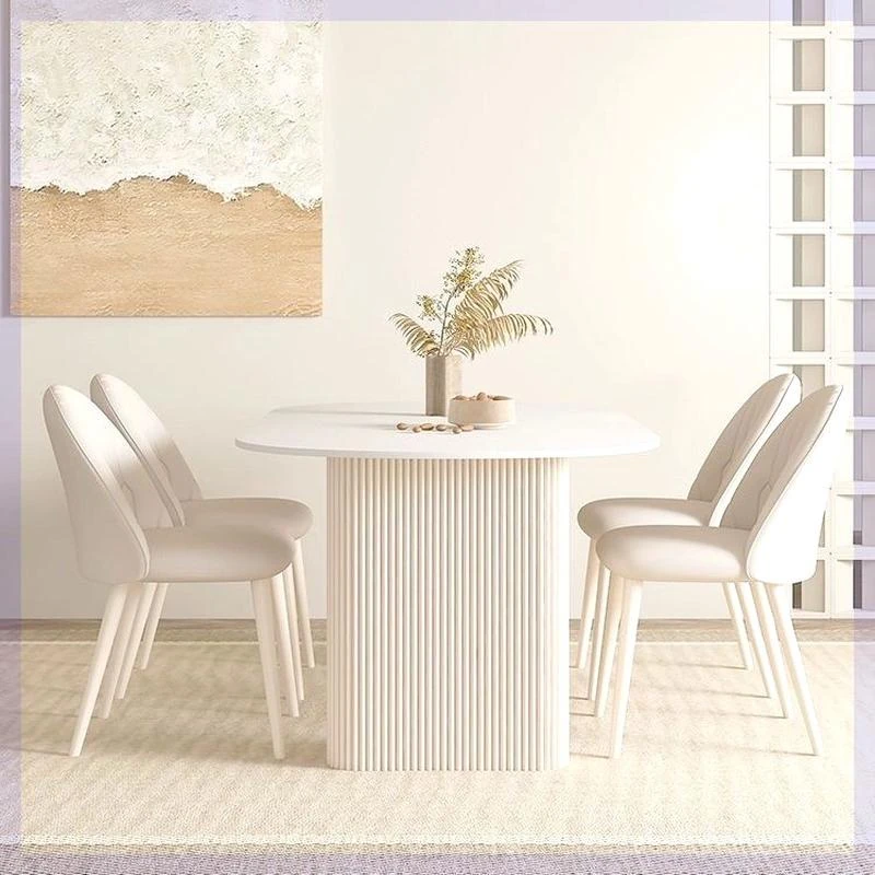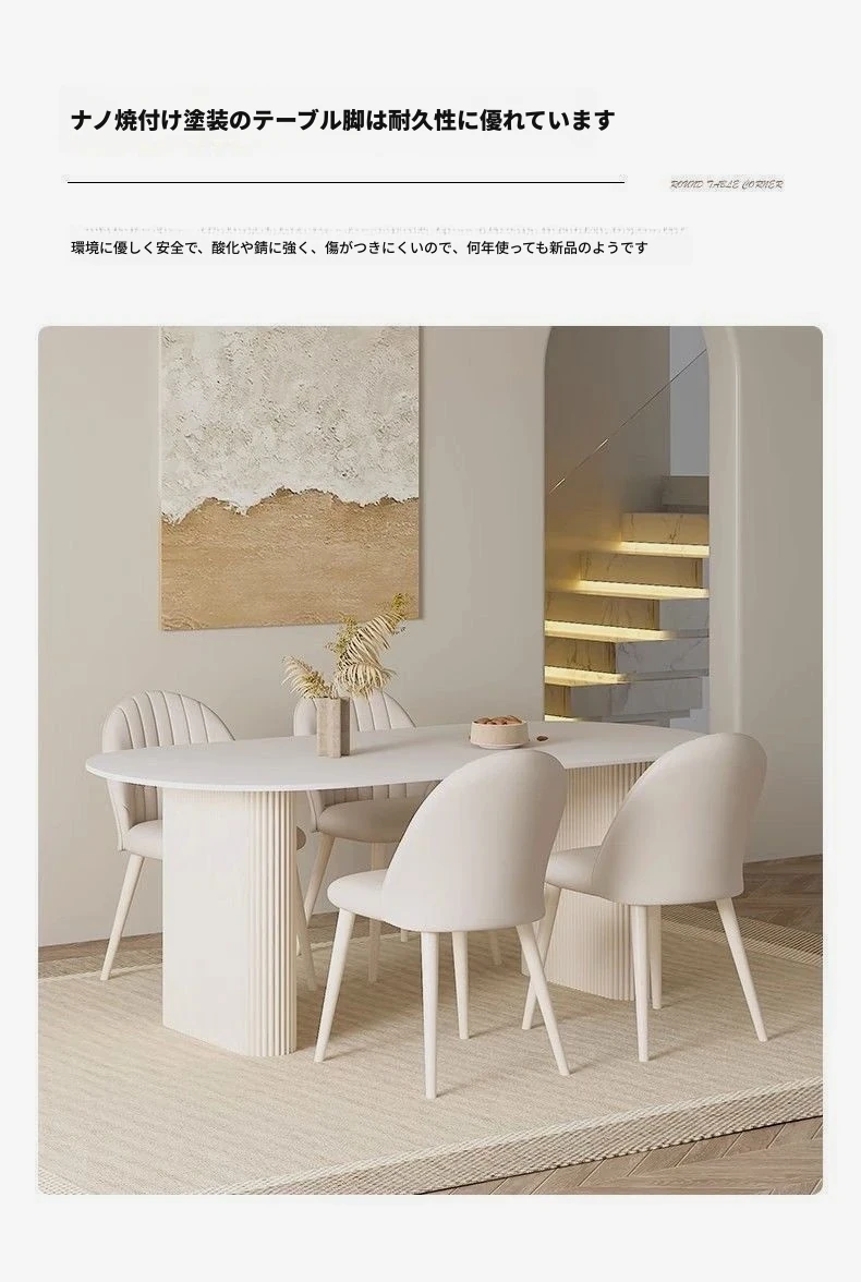 クリーム風の純白の岩板ダイニングテーブル|モダンでシンプルな軽奢スタイル|小スペースにもぴったりなフレンチスタイルのコンビネーション家具