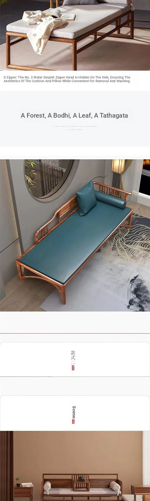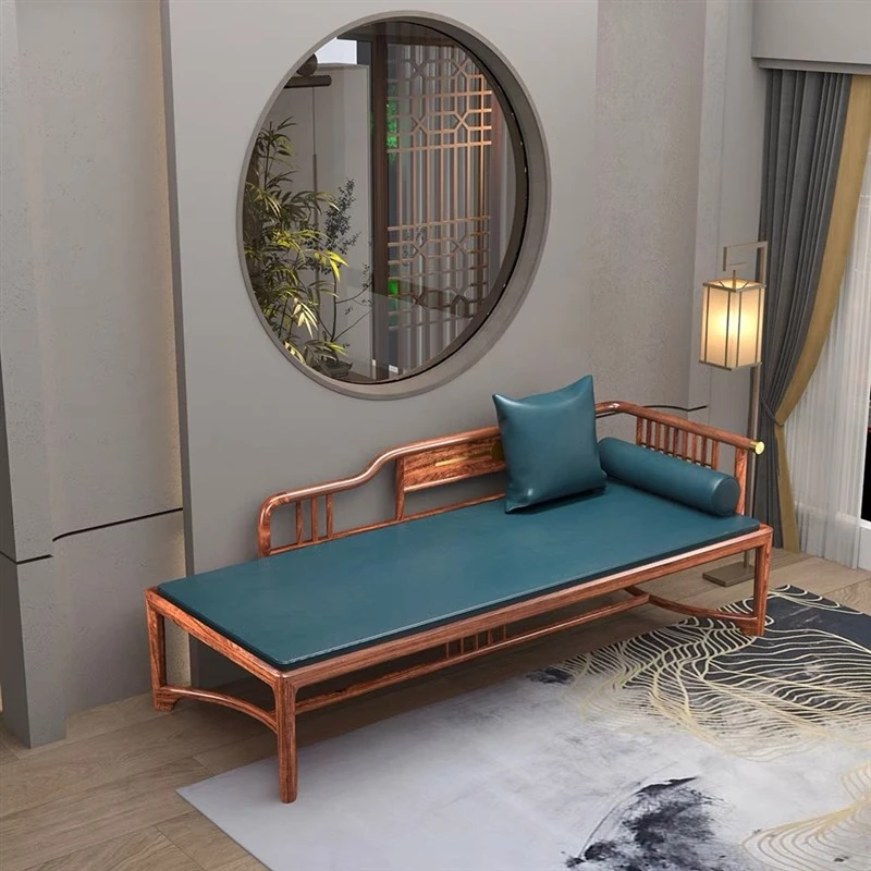 Elegant Wu Jin Wood New Chinese Style Luxury Chaise Lounge for Small Bedrooms – Premium Solid Wood Sofa Bed, Perfect for Modern Living Spaces