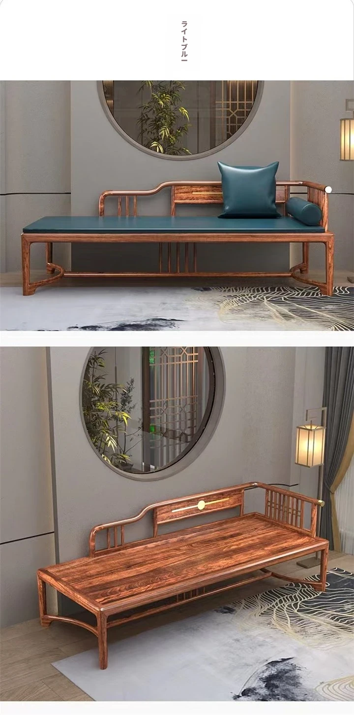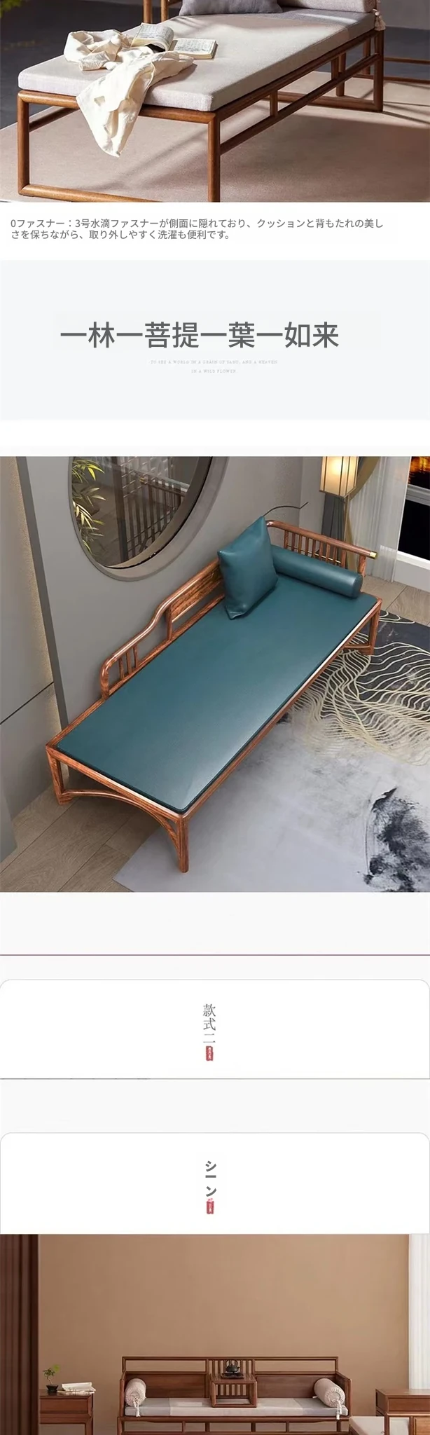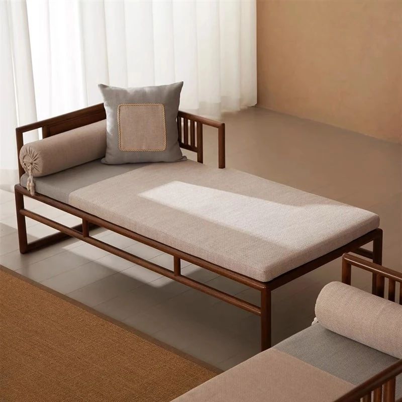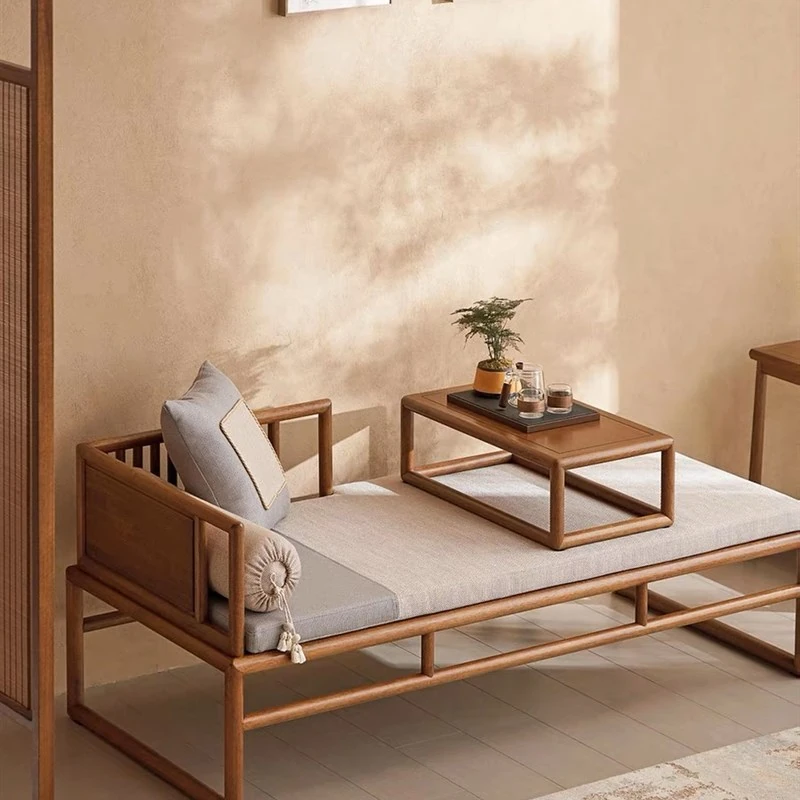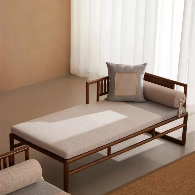 ウッディなウーキン材を使用した新中式の高級感漂う小型寝室用の貴妃椅子。洗練されたデザインで、リラックスしたひとときを提供します。高品質な無垢材を使用した一人用の贅沢なベッドチェアで、あなたの空間を格上げします。