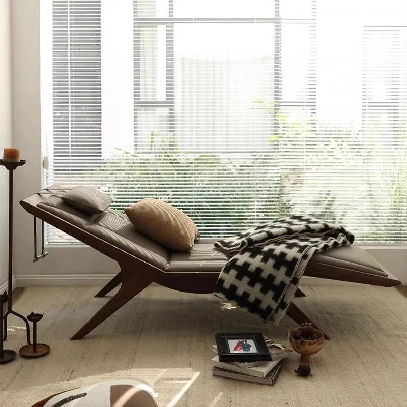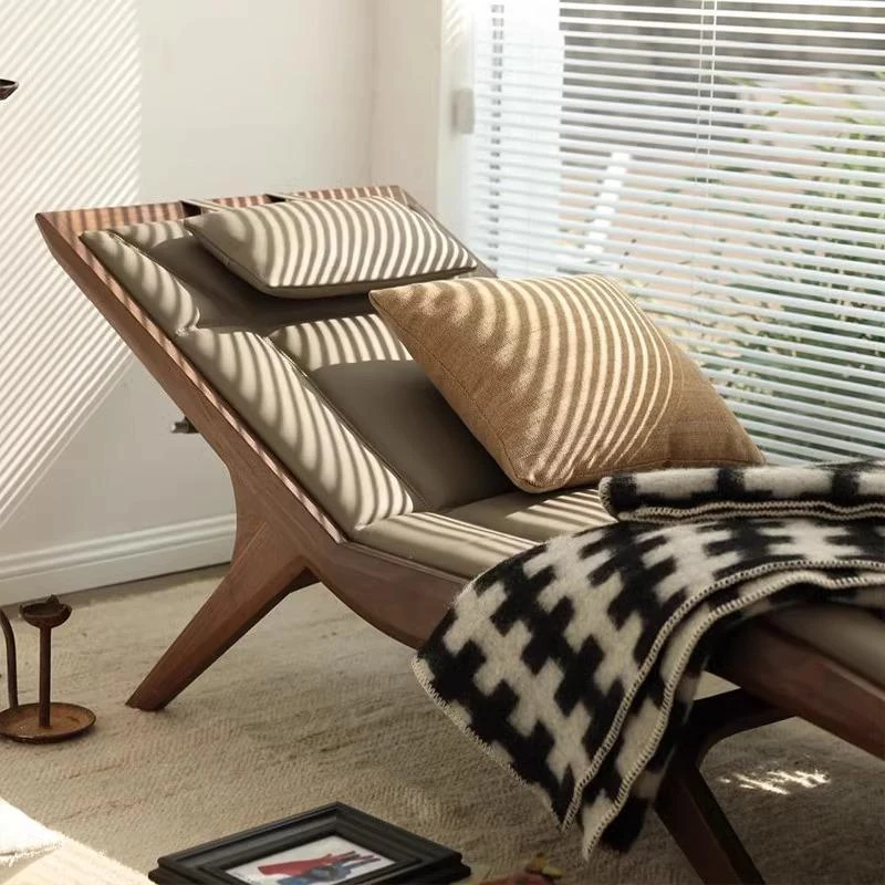 新中式禅風のブラックウォルナットとホワイトアッシュのリラックスチェア - 高級感溢れる無垢材の寝椅子、ホテルや民宿、オフィスにも最適な美しい貴妃椅子。心を癒すひとときをお楽しみください。