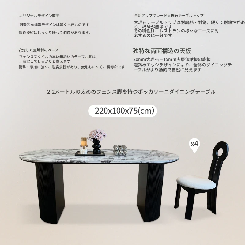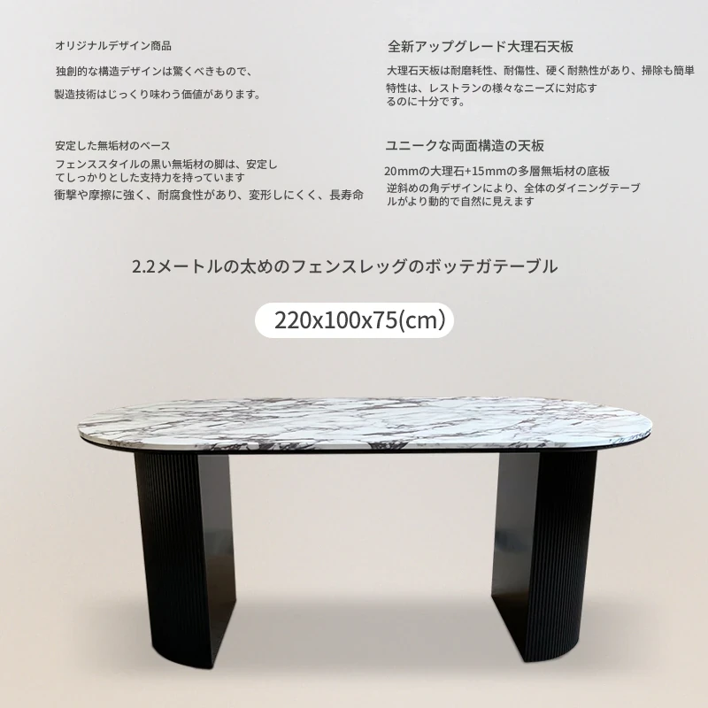 2.2*1.0メートル【太いフェンス脚のボッテガ・ヴェネタテーブル】
