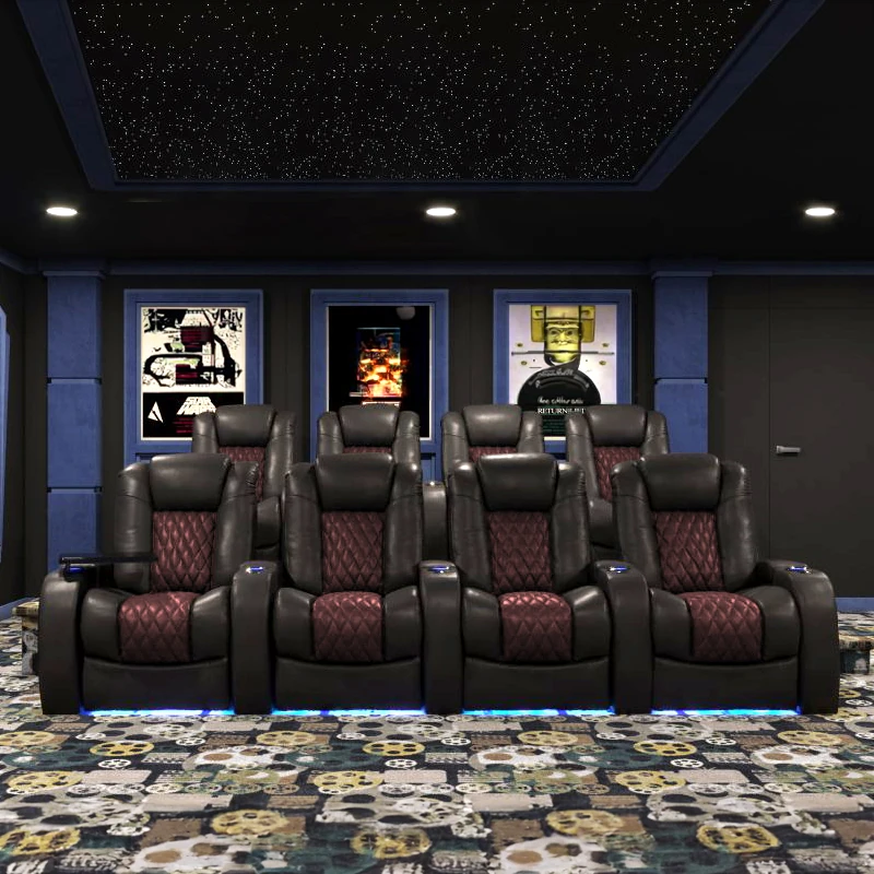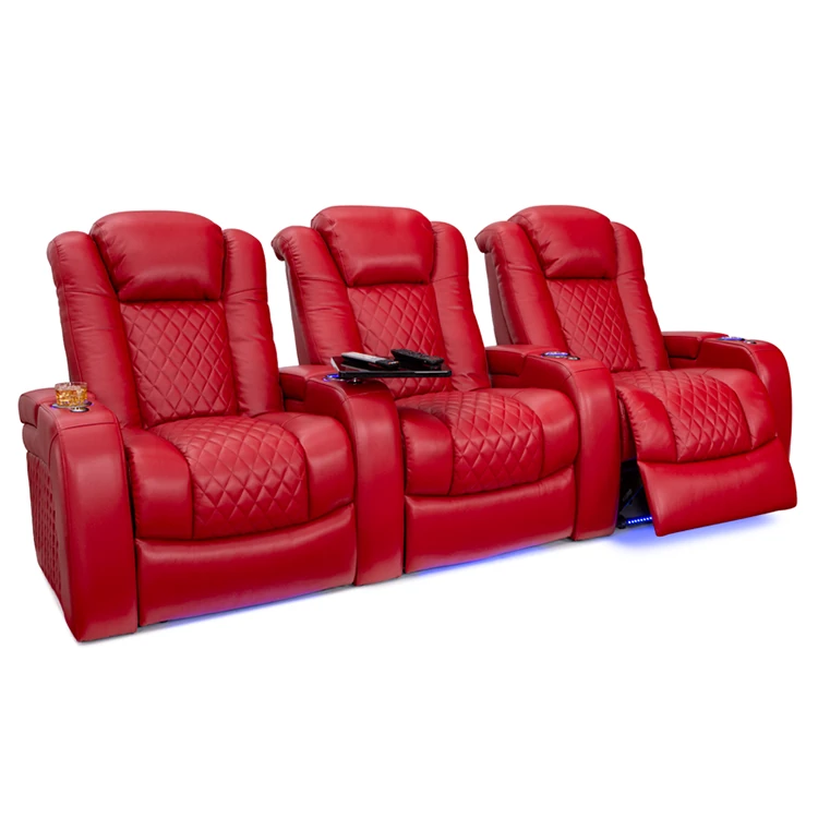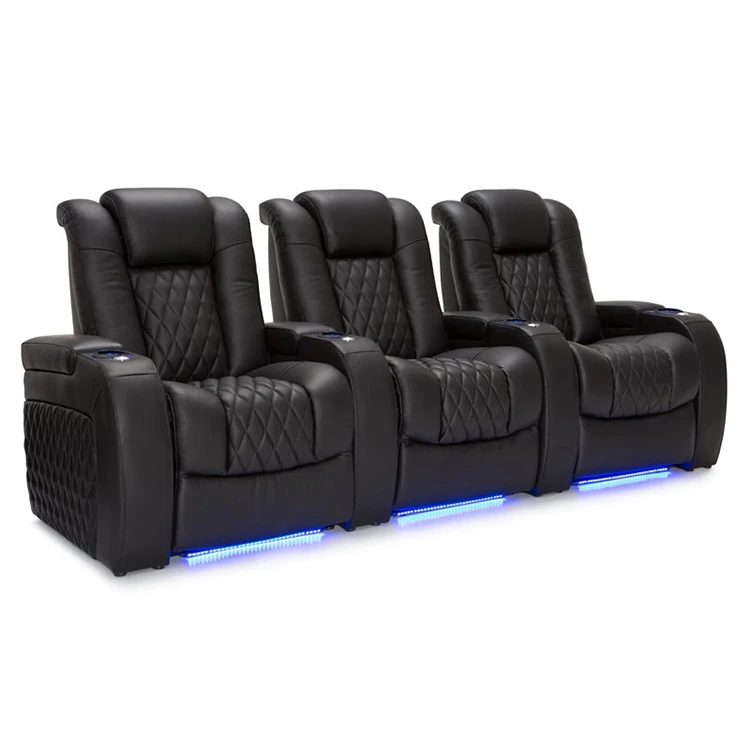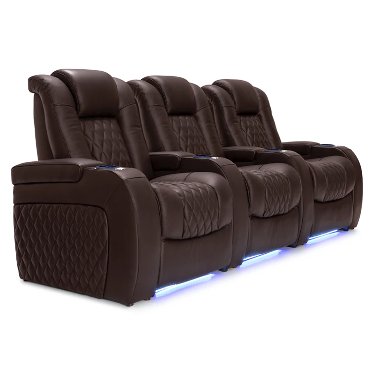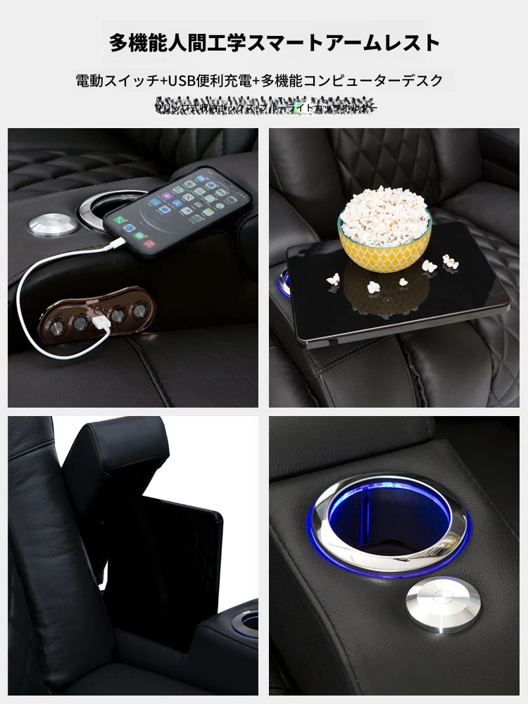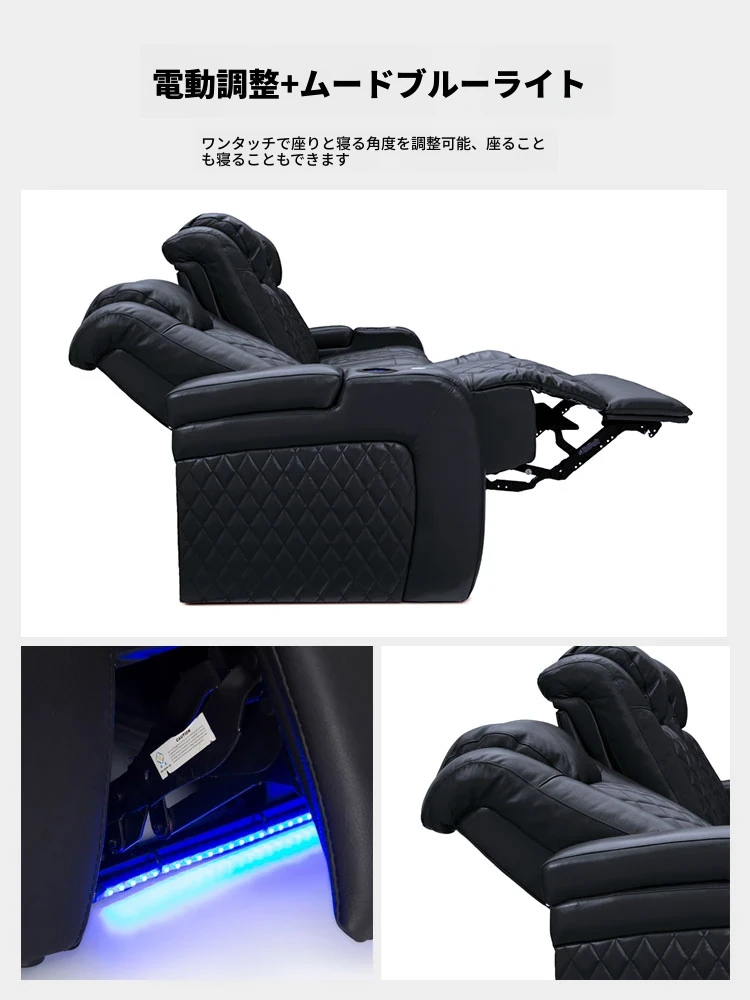 高背レザーソファ - 本革製、電動機能付き、スマートホームシアターに最適なリビングルーム用シート。快適な座り心地で、映画鑑賞やリラックスタイムを贅沢に演出します!