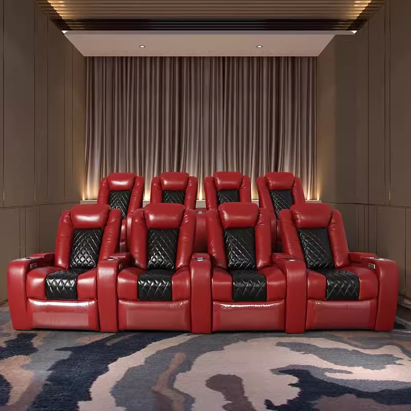 レッドブラックツートンカラートップグレインレザーシアターソファ
