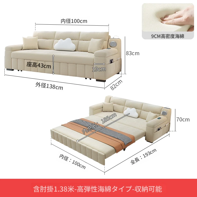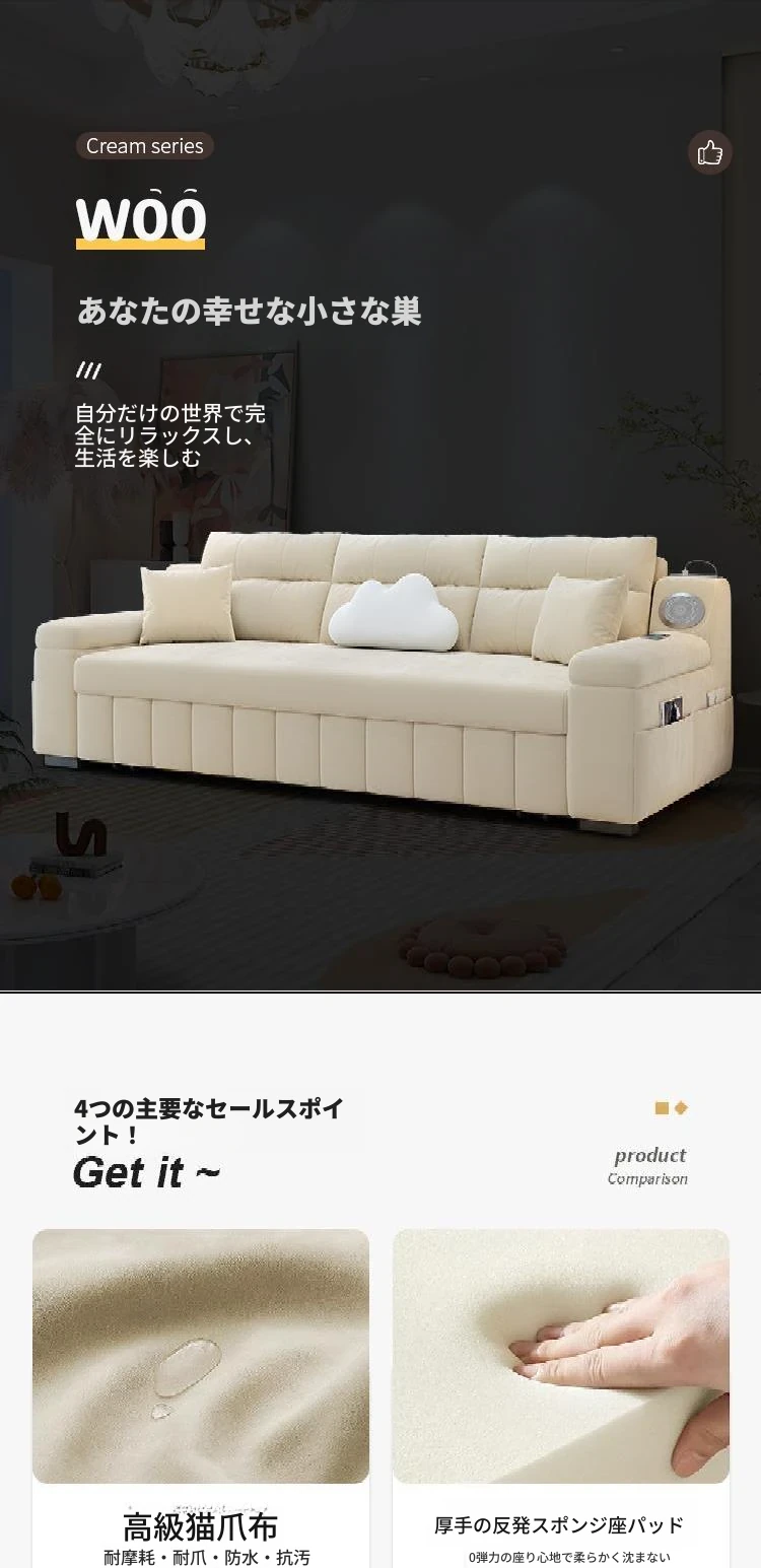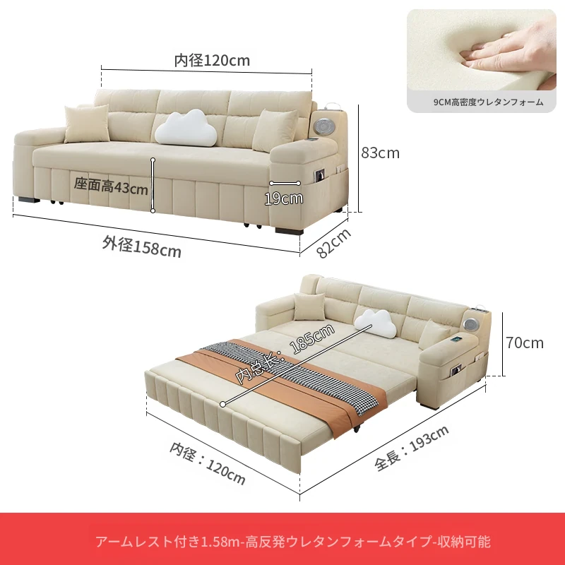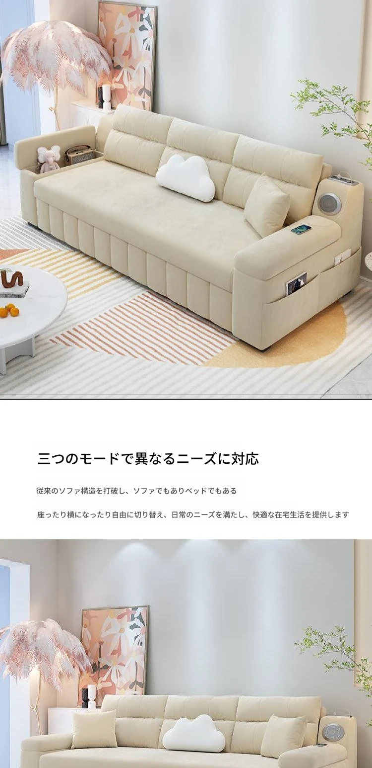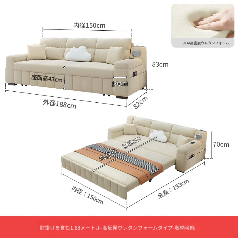 香港送料無料!おしゃれな実木製ソファベッド。省スペース設計で小型アパートにも最適!多機能で便利な折りたたみ式のダブルベッド。リビングルームにぴったりなトレンドアイテム!