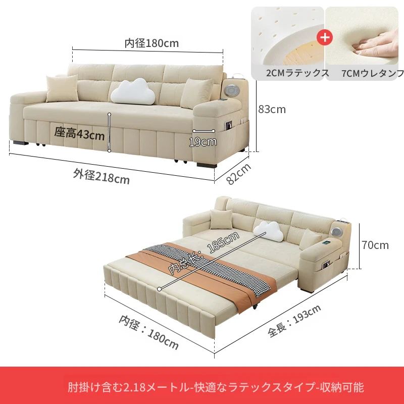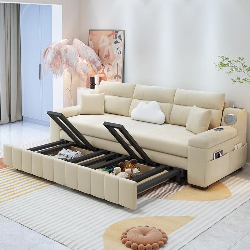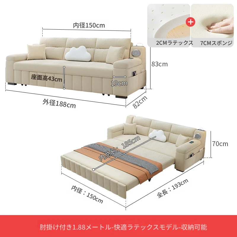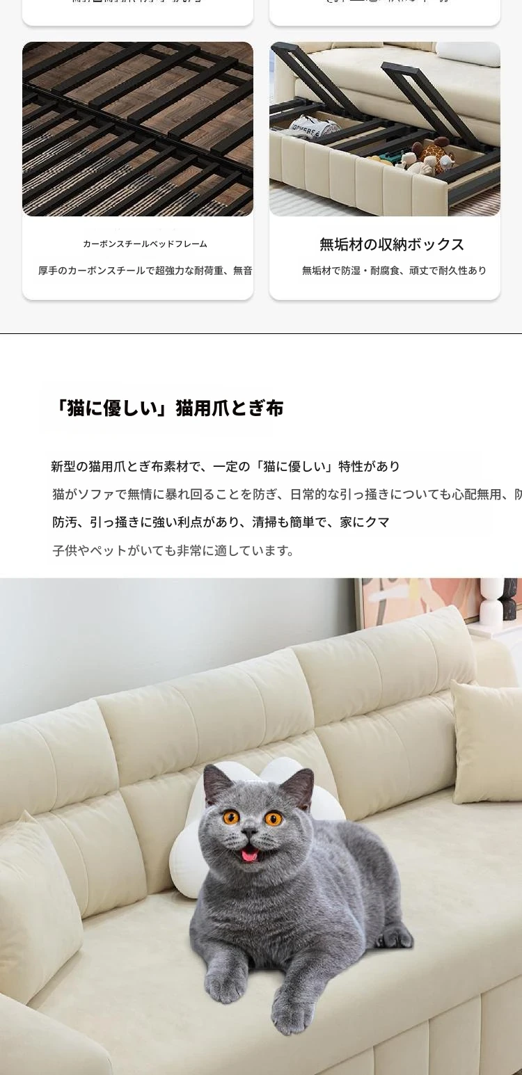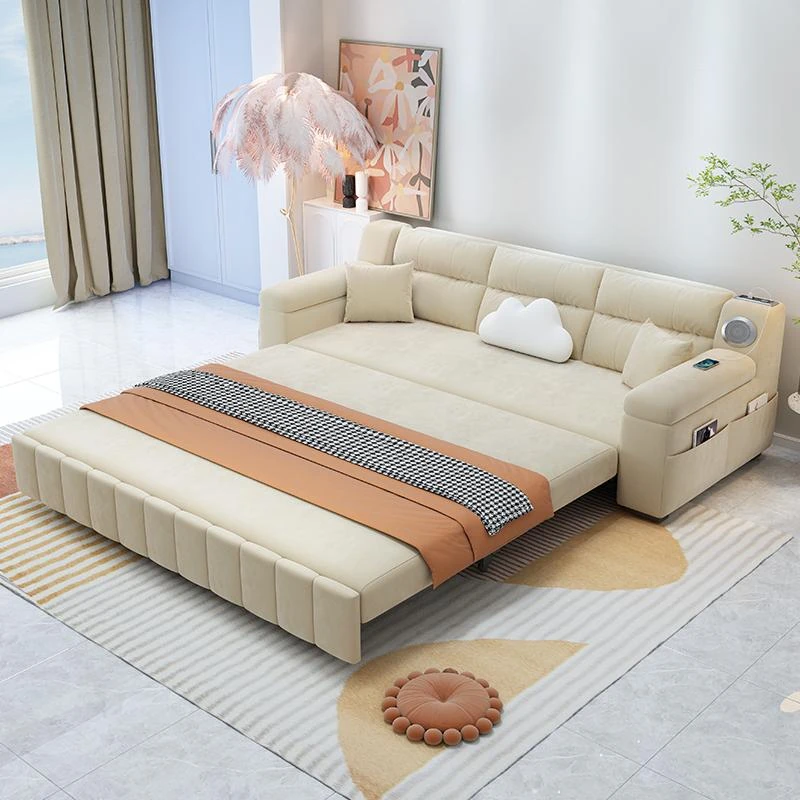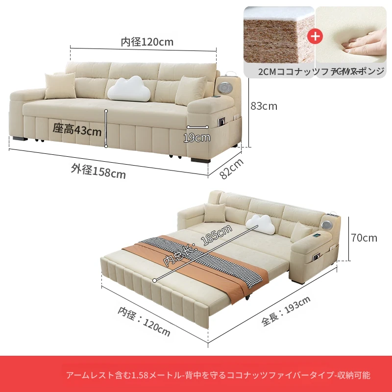 香港送料無料!おしゃれな実木製ソファベッド。省スペース設計で小型アパートにも最適!多機能で便利な折りたたみ式のダブルベッド。リビングルームにぴったりなトレンドアイテム!