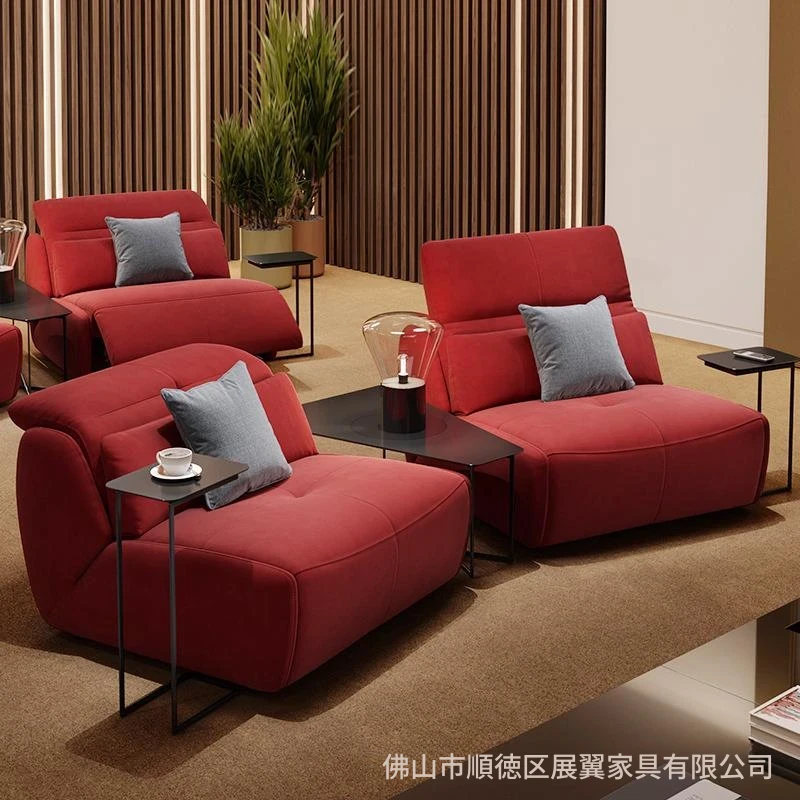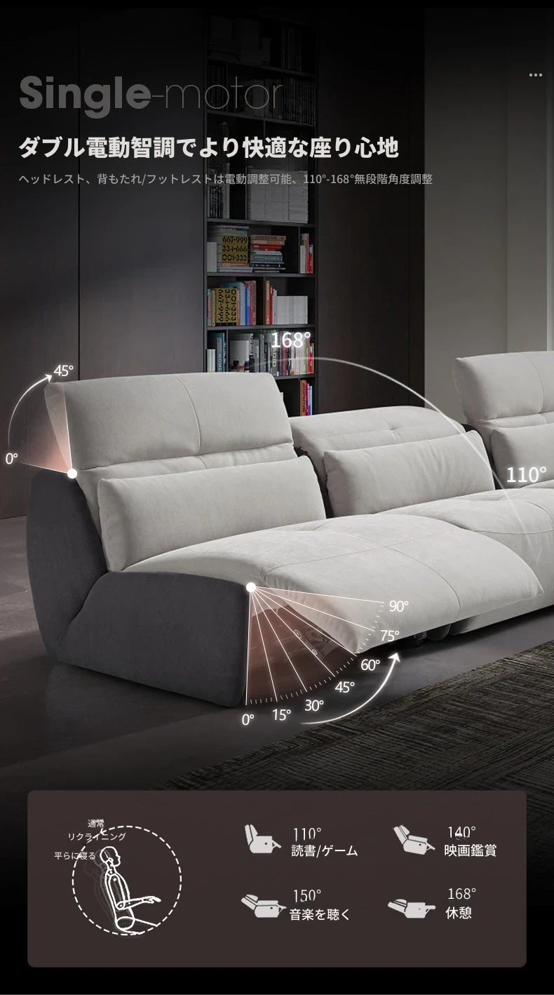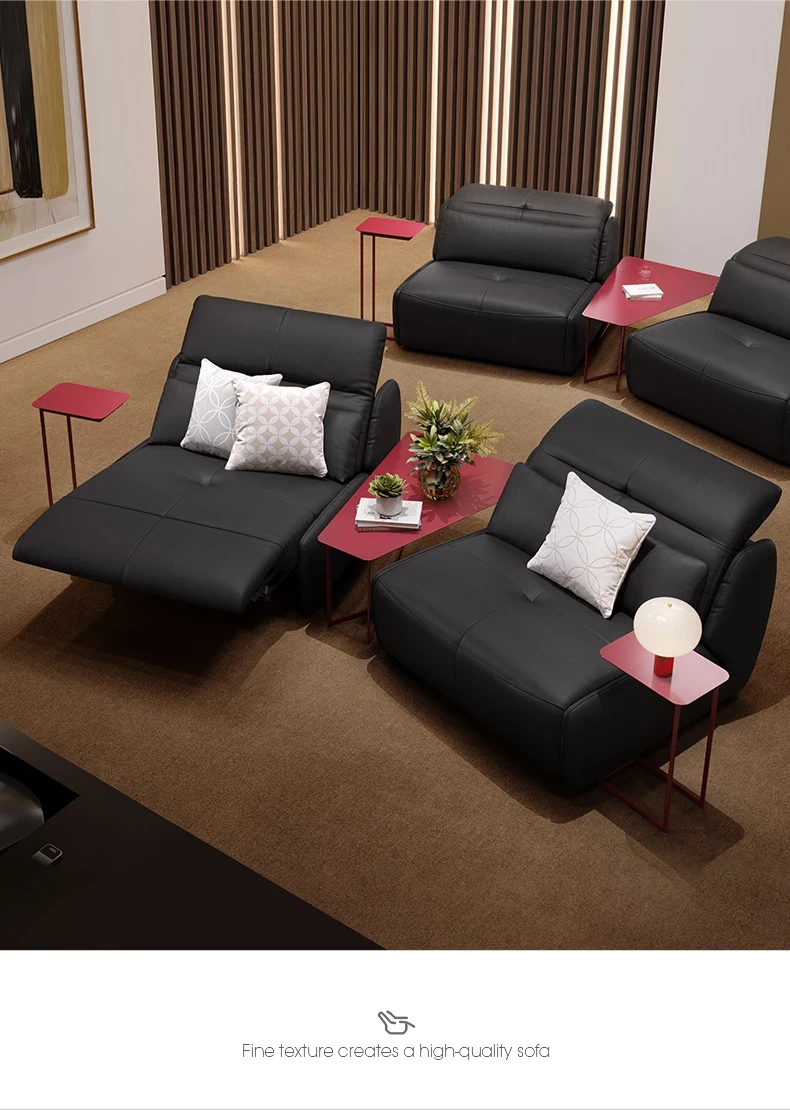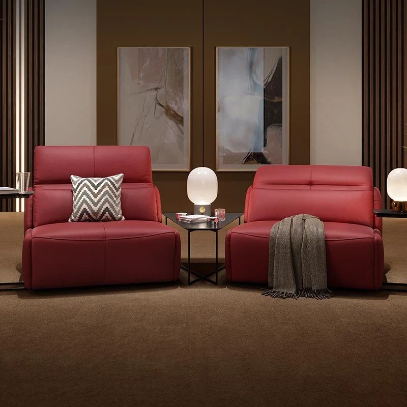 イタリアンレザーの贅沢なリビングルーム用電動シングルソファ、快適なカウチスタイルのシアター向け、極上のリラックス体験を提供する貴族的なデザイン!