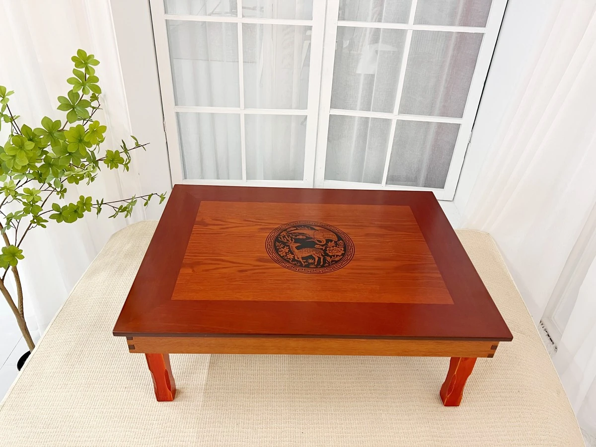 韓国風の折りたたみテーブル|朝鮮族の伝統的な飯卓|四角形デザイン|畳の上でも使える便利なローテーブル|おしゃれな窓辺にぴったりなプリント仕上げ|リラックスしたい時に最適なアイテム!